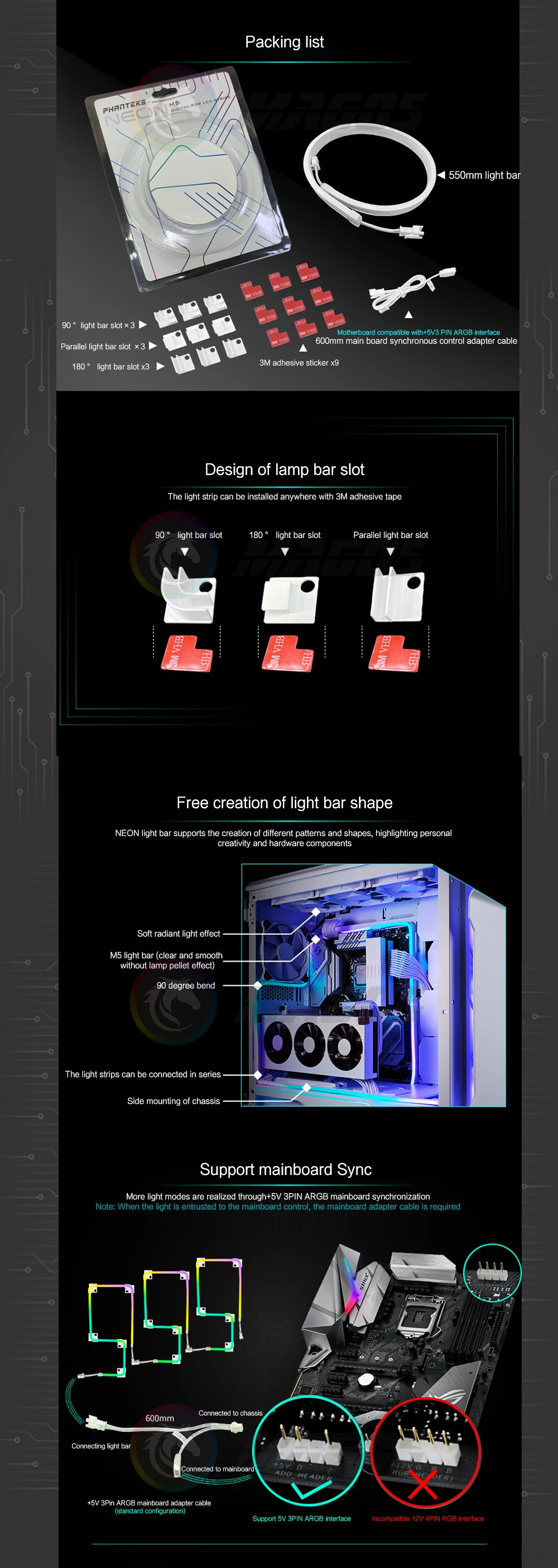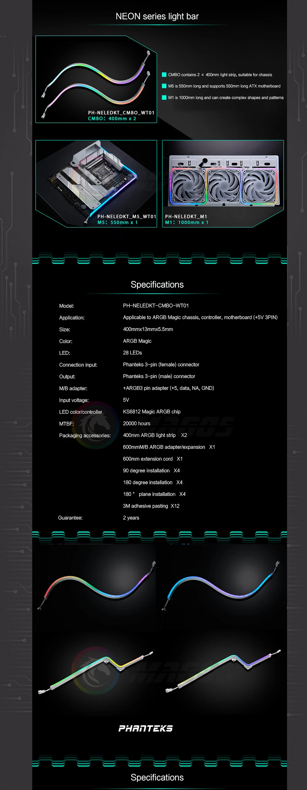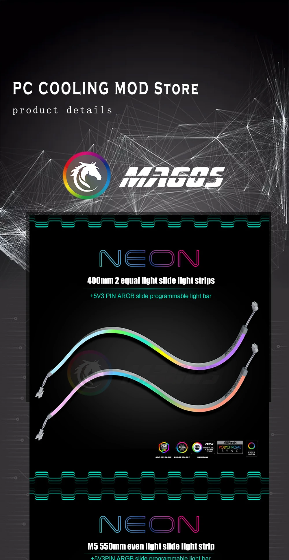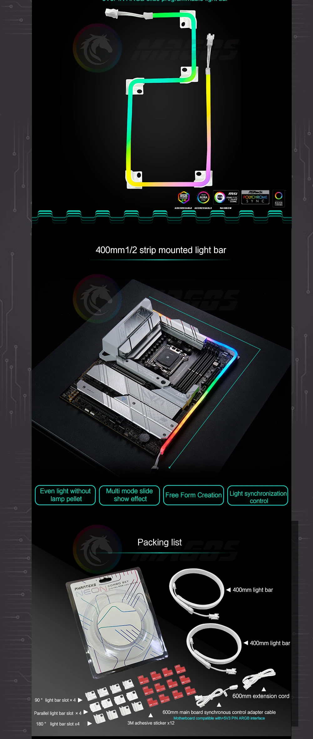 Comprar PHANTEKS-tira de luz M5 CMBO, juego de tira de luz LED de neón ARGB, 5V, 3 pines, cinta de lámpara para PC, armario de juegos, 400/550mm
