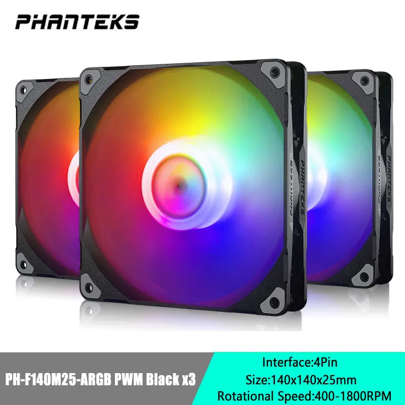 Comprar PHANTEKS-ventilador de caja PH-F140/F120M25, 140/120mm, 4 pines, PWM, alto flujo de aire, silencioso, CPU, 400-2000RPM, rodamiento FDB Cascadable