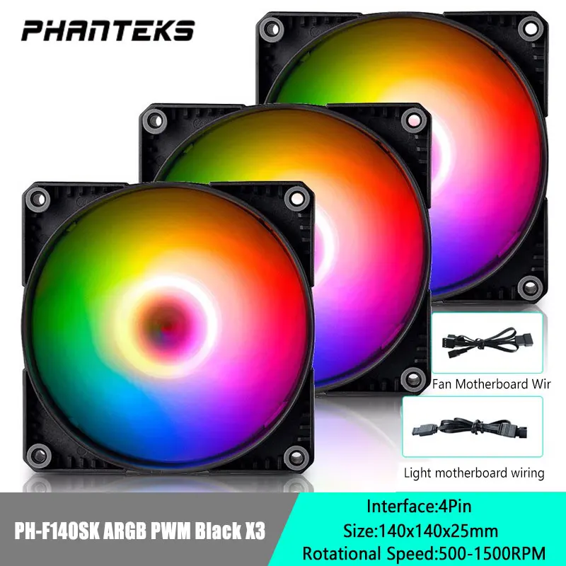 Comprar Phanteks-ventilador de chasis PH-F120SK/140SKPWM, 12cm/14cm, 5V-3 pines, ARGB, refrigeración (3X paquete/eje hidráulico/4Pin-PWM/500-1500 RPM)