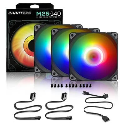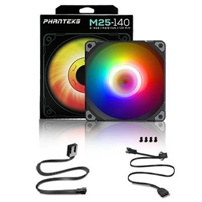 Comprar Phanteks-ventilador PWM de 4 pines con alto volumen de aire, refrigeración por agua, radiador, cadena de margaritas, negro, blanco, M25,140x140x25mm