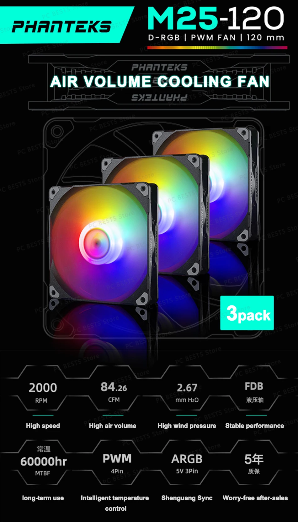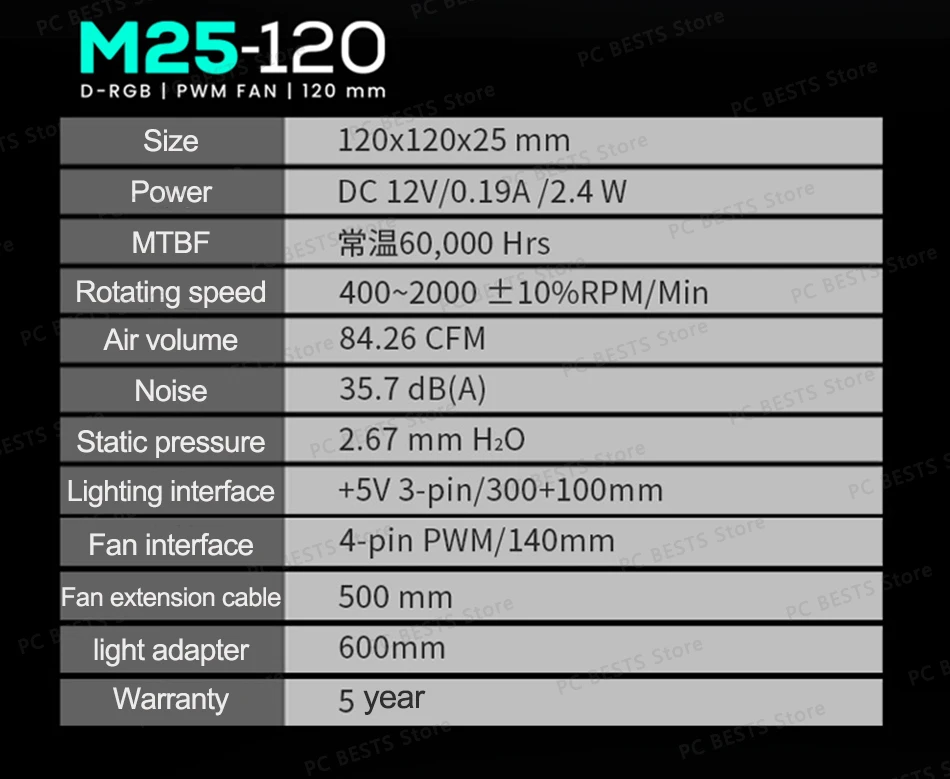 Interfaz del ventilador: PWM de 4 pines/140mm