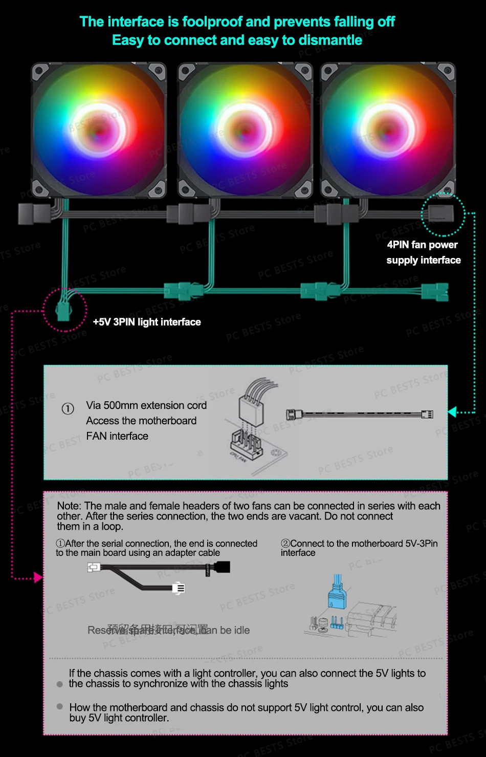 Cable de extensión del ventilador: 500mm