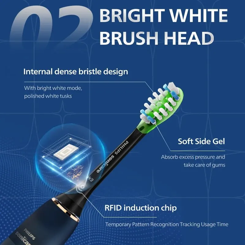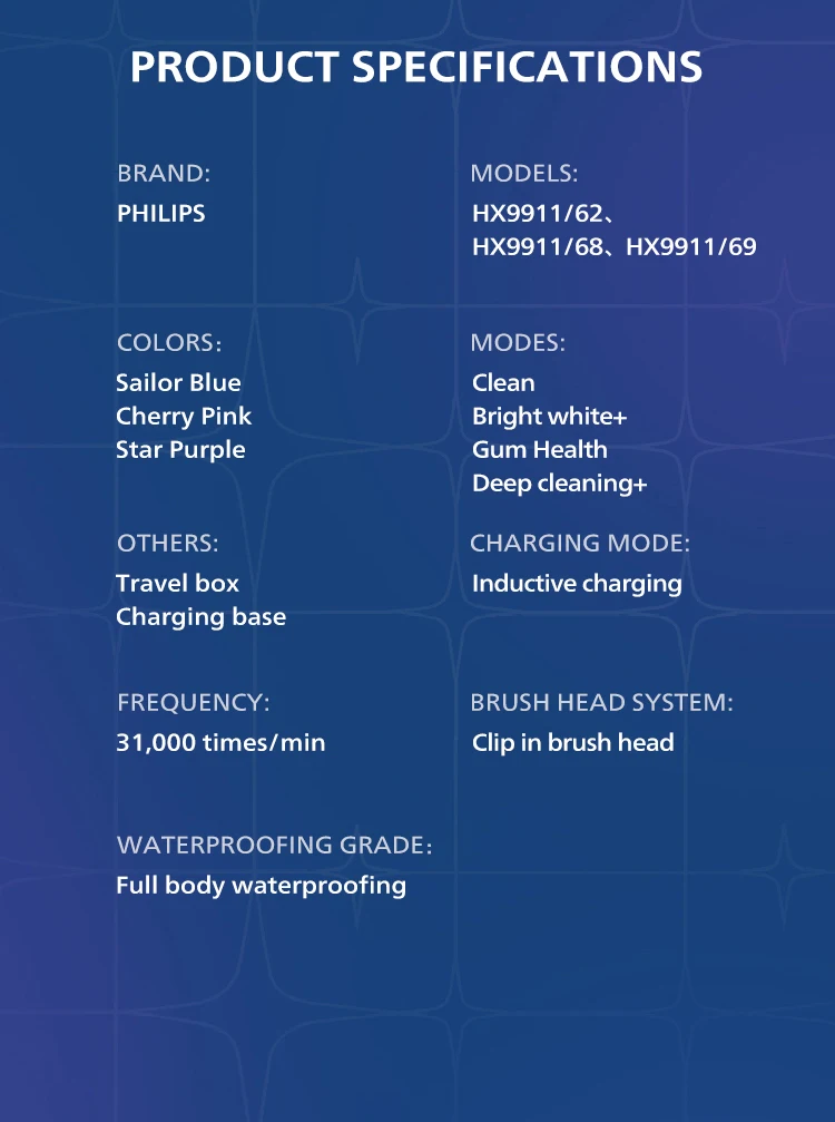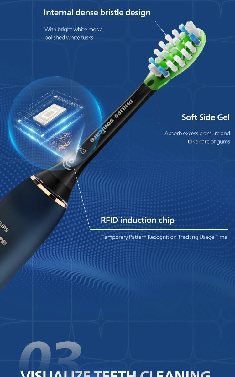 • Limpieza sónica de alta tecnología:El cepillo de dientes eléctrico Philips HX9911 ofrece una experiencia de limpieza inteligente con su tecnología sónica de diamante, que elimina la placa y las bacterias de manera efectiva.