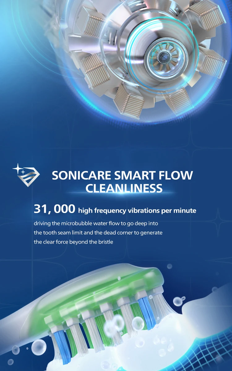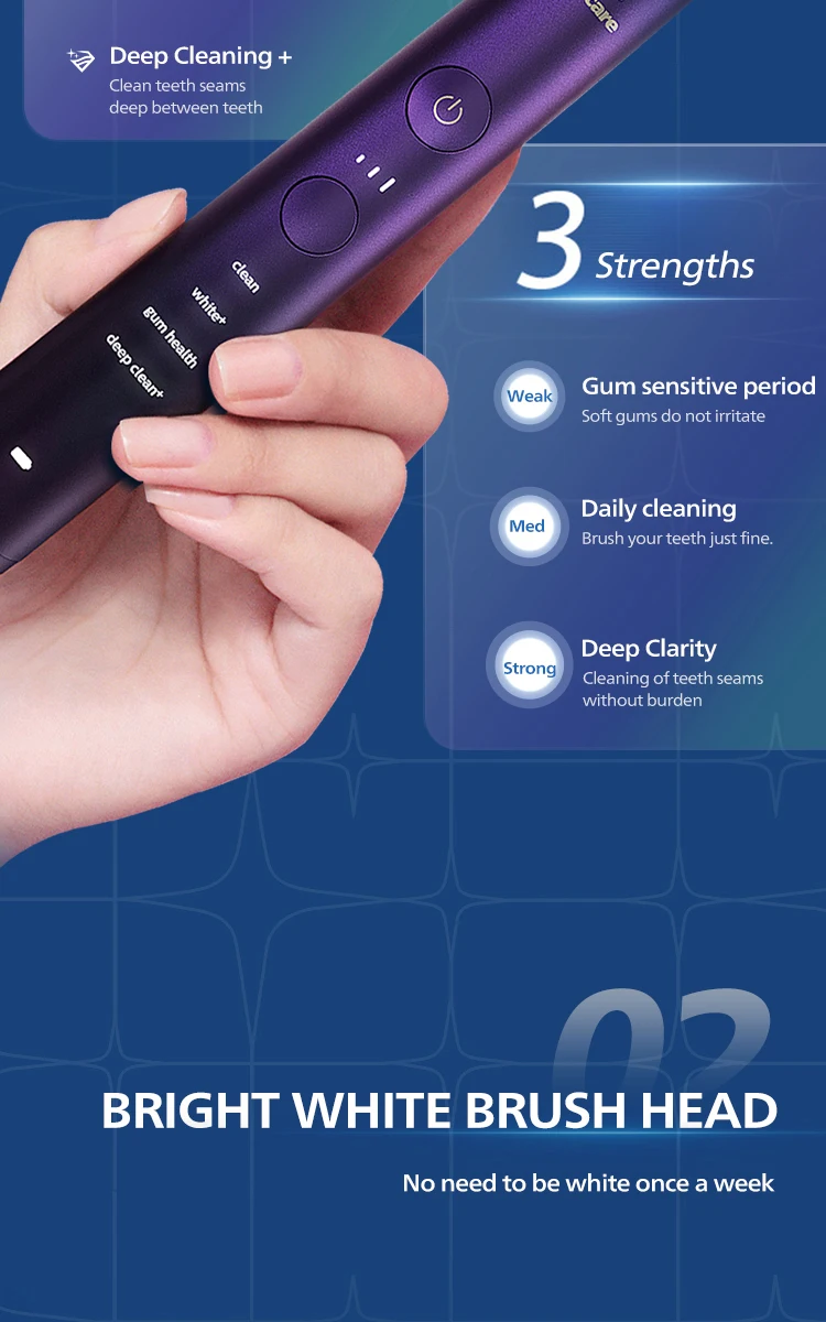 • Gran rango de movimiento:Con hasta 50000 movimientos por minuto, este cepillo de dientes garantiza una experiencia de limpieza completa y eficiente.