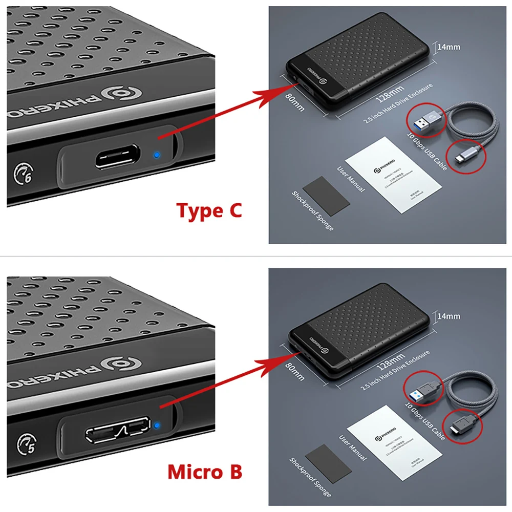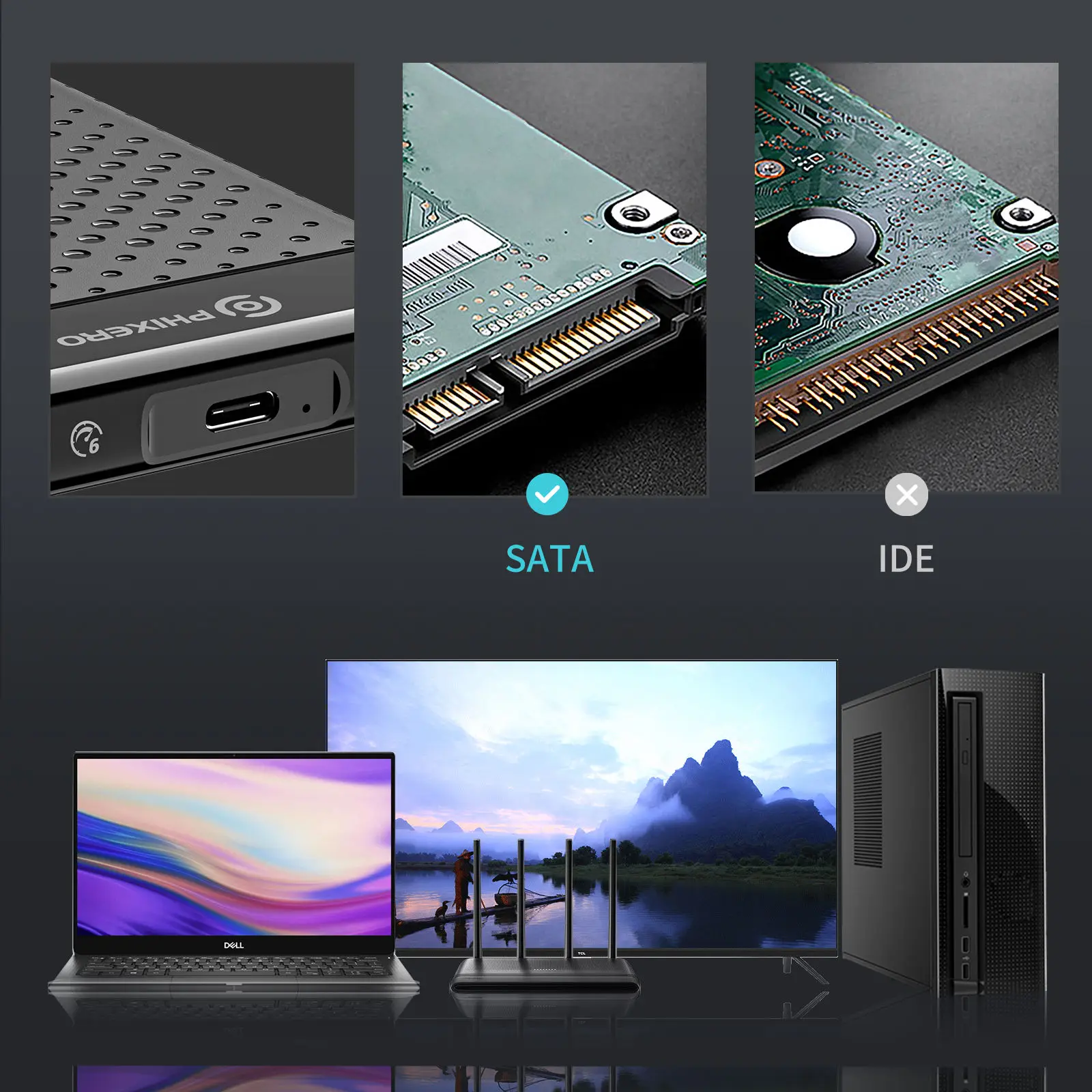 Adecuado para todos los discos duros/SSD SATA de 2,5 pulgadas, discos duros de 7 mm-9,5 mm de grosor.