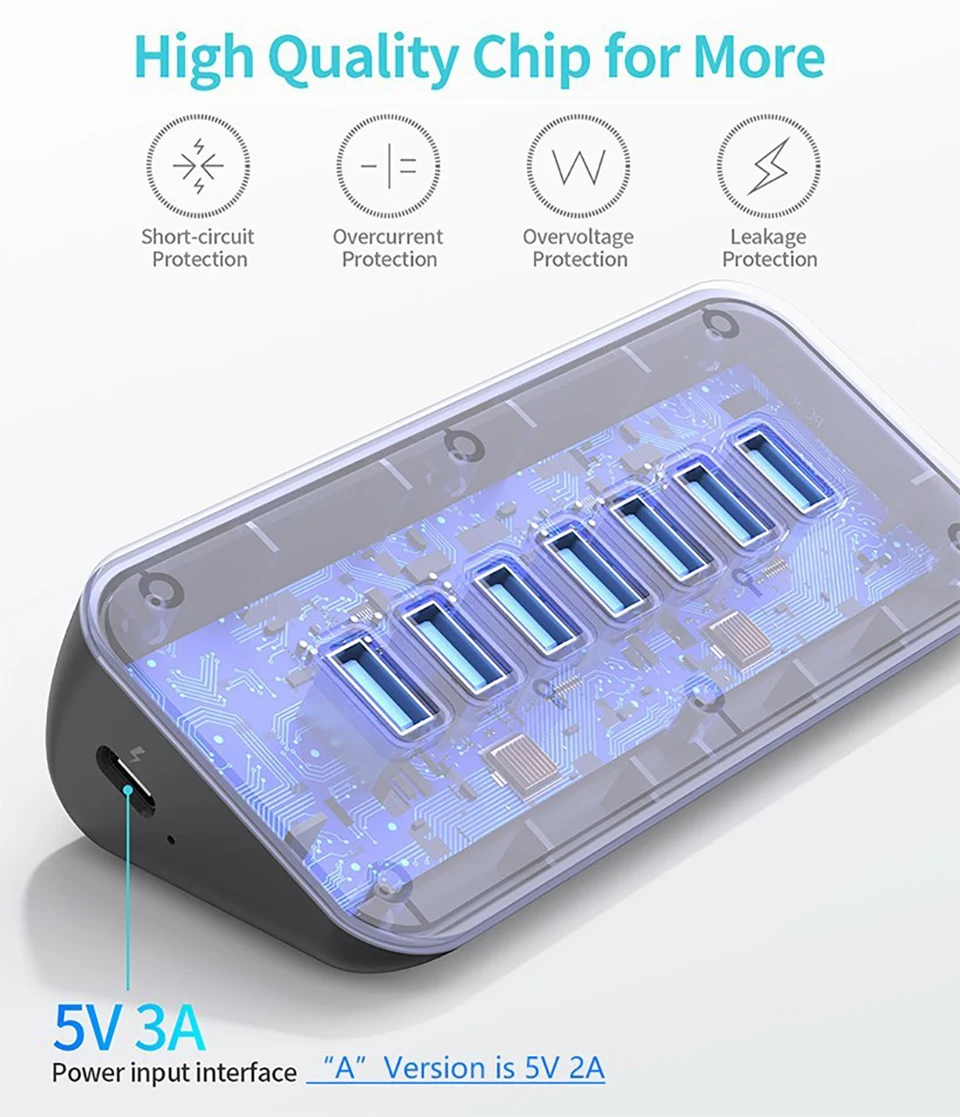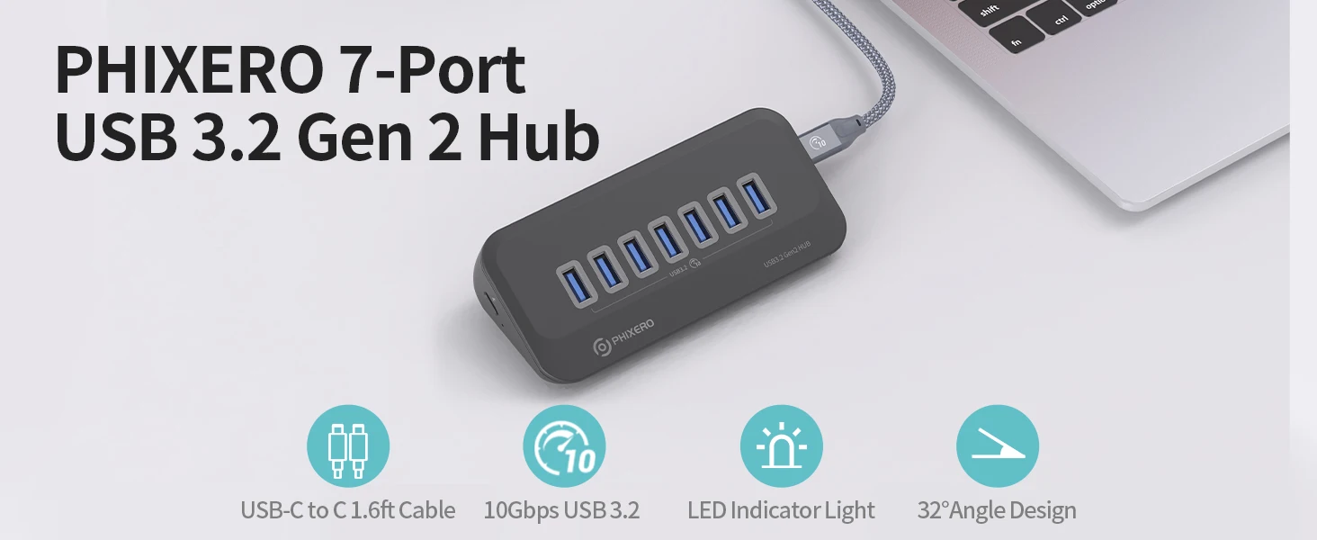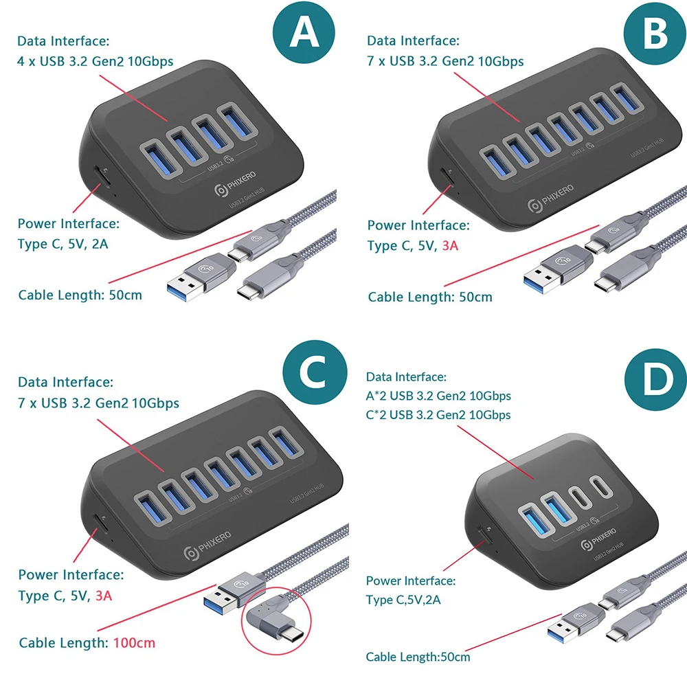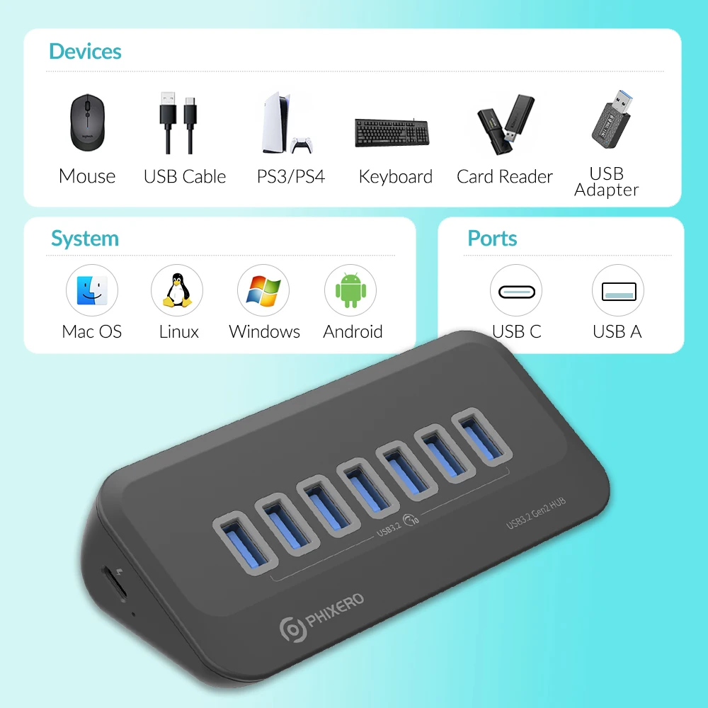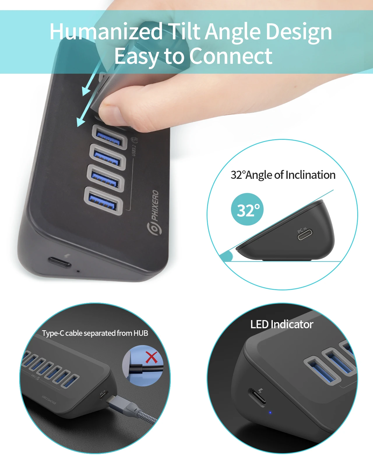 Comprar PHIXERO 7 puertos USB HUB 3,2 estación de acoplamiento Hub tipo C 10Gbps divisor interruptor Dock multipuerto enchufe de tarjeta SD para Macbook portátil