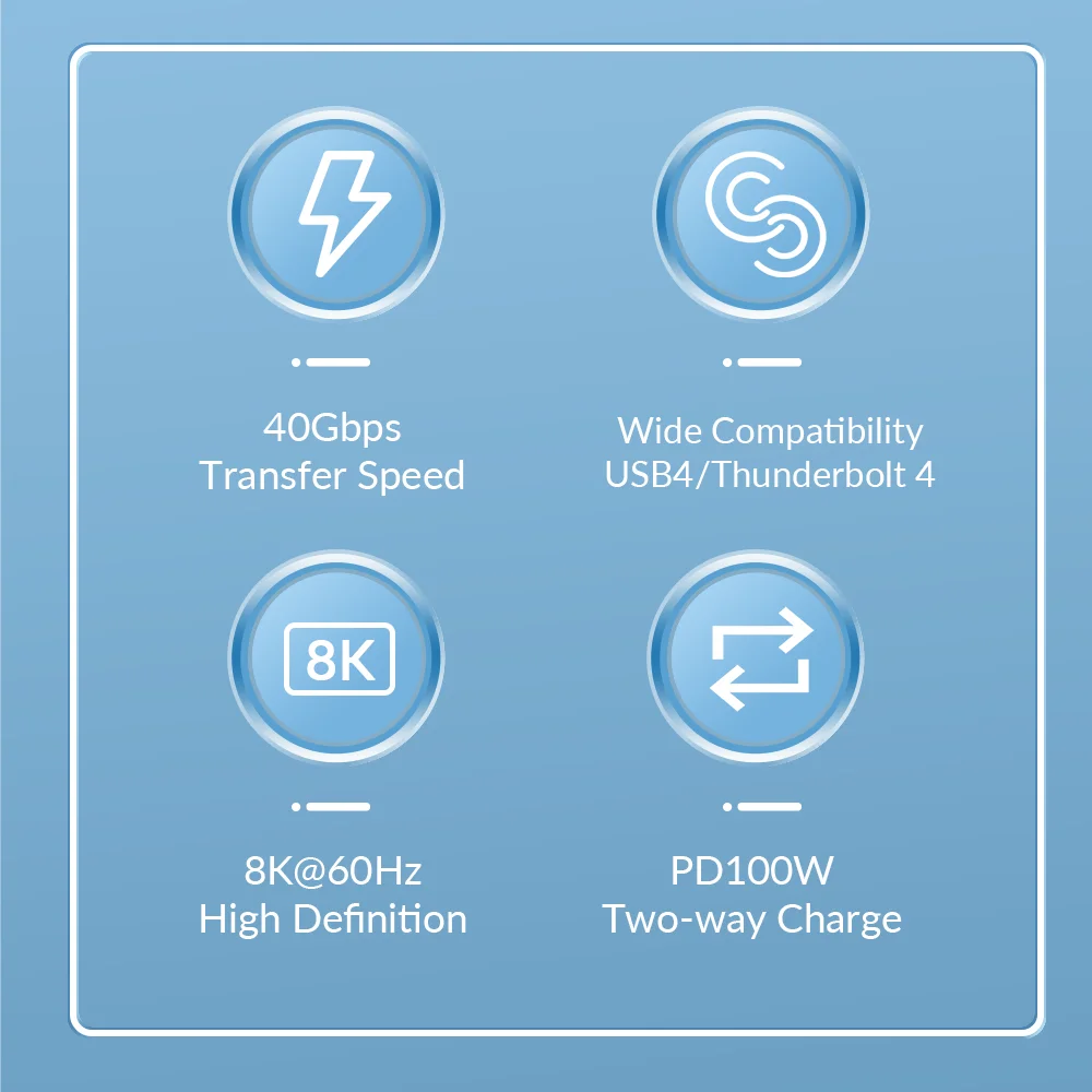 ¡Equipado con la última tecnología de Intel! Cable Thunderbolt 4/USB 4 certificado oficialmente. Velocidad de transmisión rápida y alta compatibilidad de protocolo