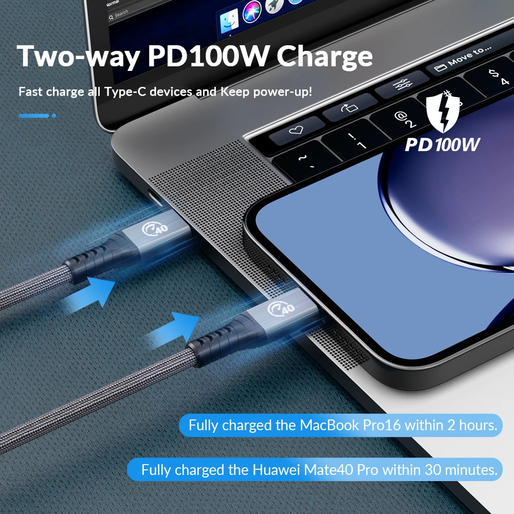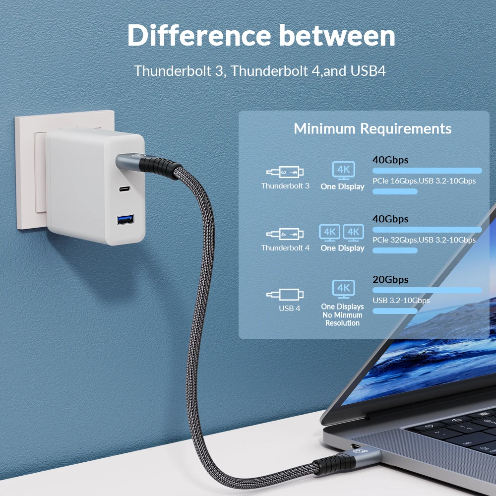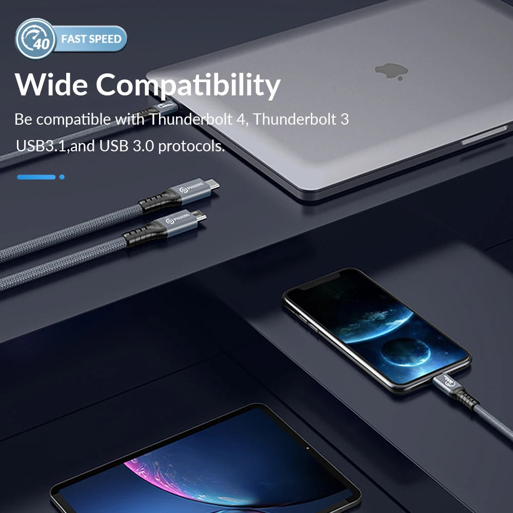 Compatible con cable Thunderbolt 4 con entrega de energía de hasta 100W, que es muy adecuado para dispositivos usb-c (como Thunderbolt 4, Thunderbolt 3, USB4, usb3), y puede proporcionar transmisión de energía para ordenadores portátiles o teléfonos móviles. (Nota: la velocidad de carga puede depender de la capacidad de carga del dispositivo host).