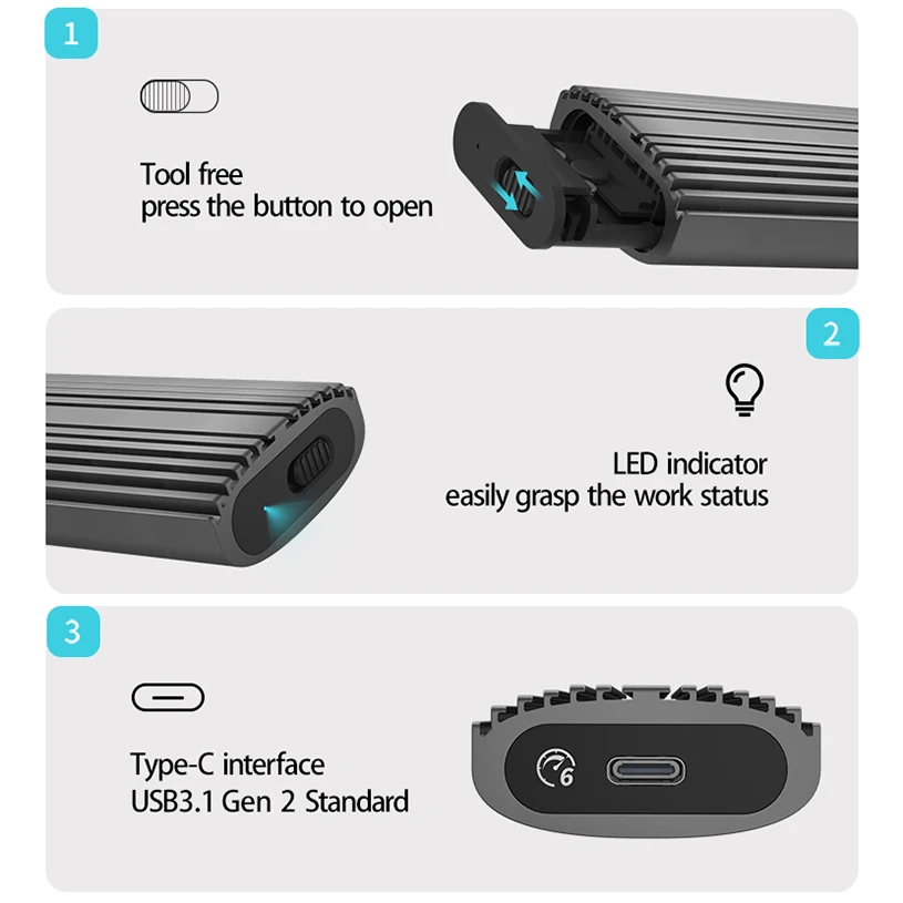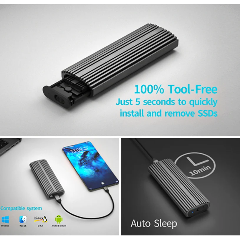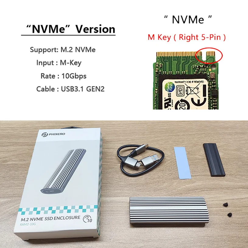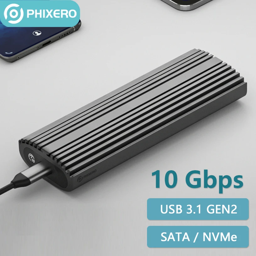 Comprar PHIXERO-carcasa de aluminio gris M2 NVMe SSD, carcasa externa NGFF SATA 3,0 PCIe HD, tipo C, USB 3,1, cubierta de disco duro, caja de almacenamiento