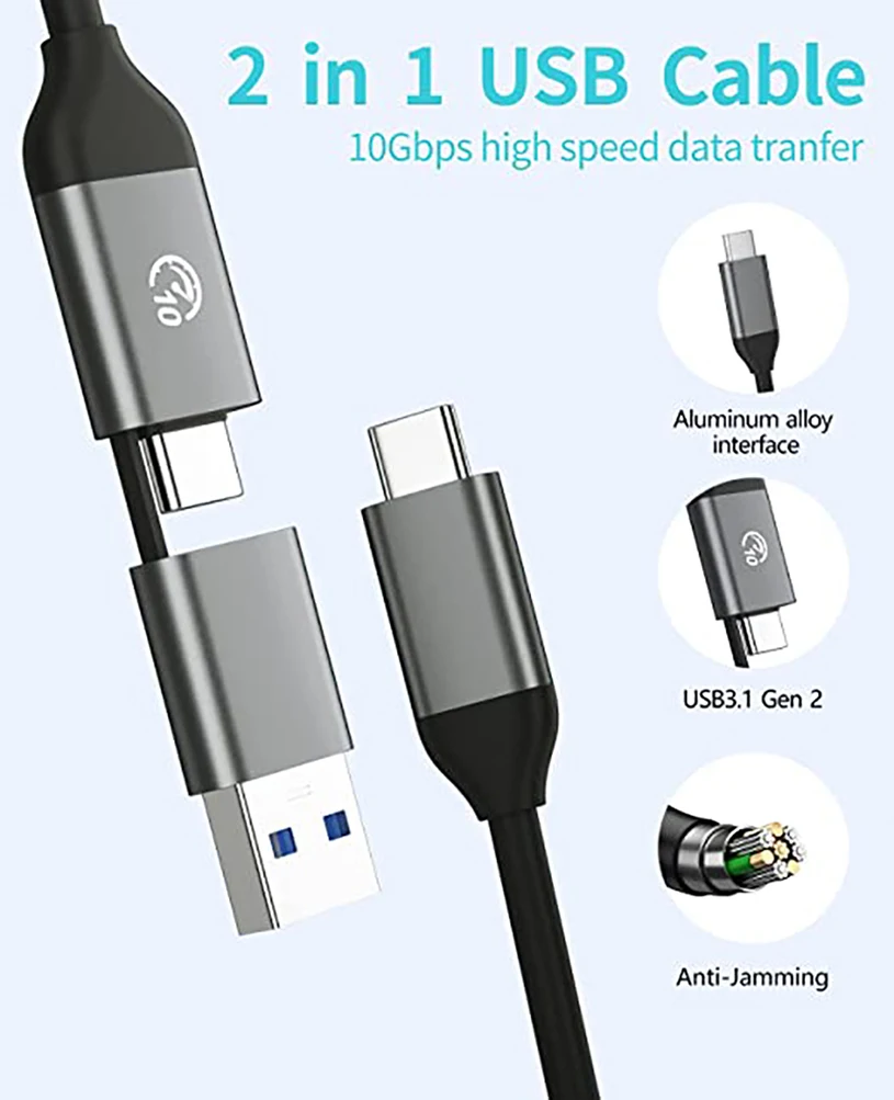 Todo el paquete incluye 2 en 1 Cable de 10Gbps, hacer transferencias más rápidas.