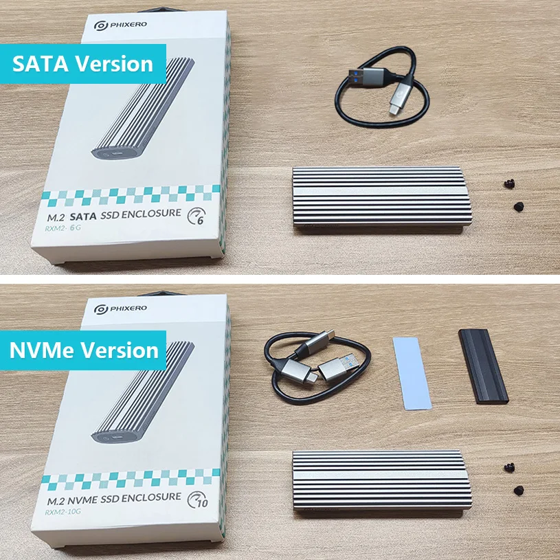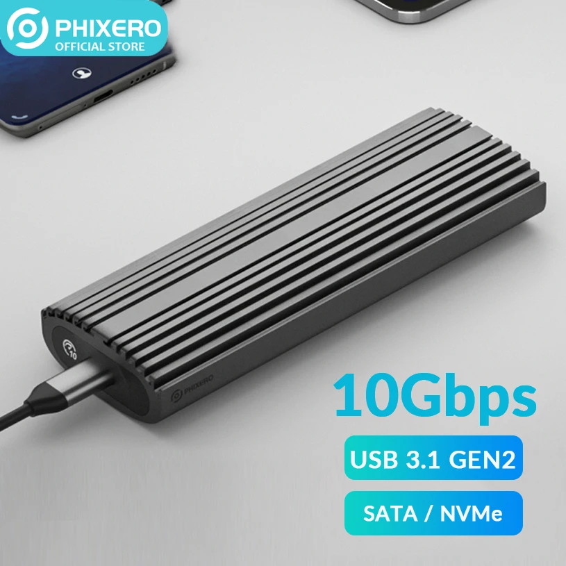 Comprar PHIXERO-carcasa de aluminio gris M2 NVMe SSD, carcasa externa NGFF SATA 3,0 PCIe HD, tipo C, USB 3,1, cubierta de disco duro, caja de almacenamiento