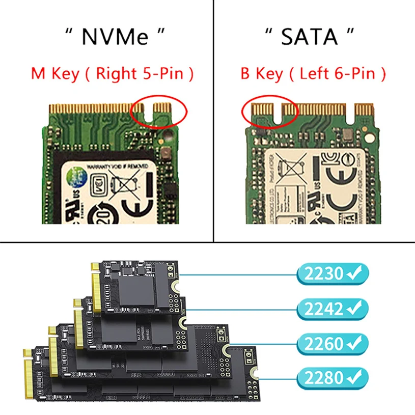 Compatible con 4 tamaños diferentes M.2 SSD : 2230, 2242, 2260, 2280.