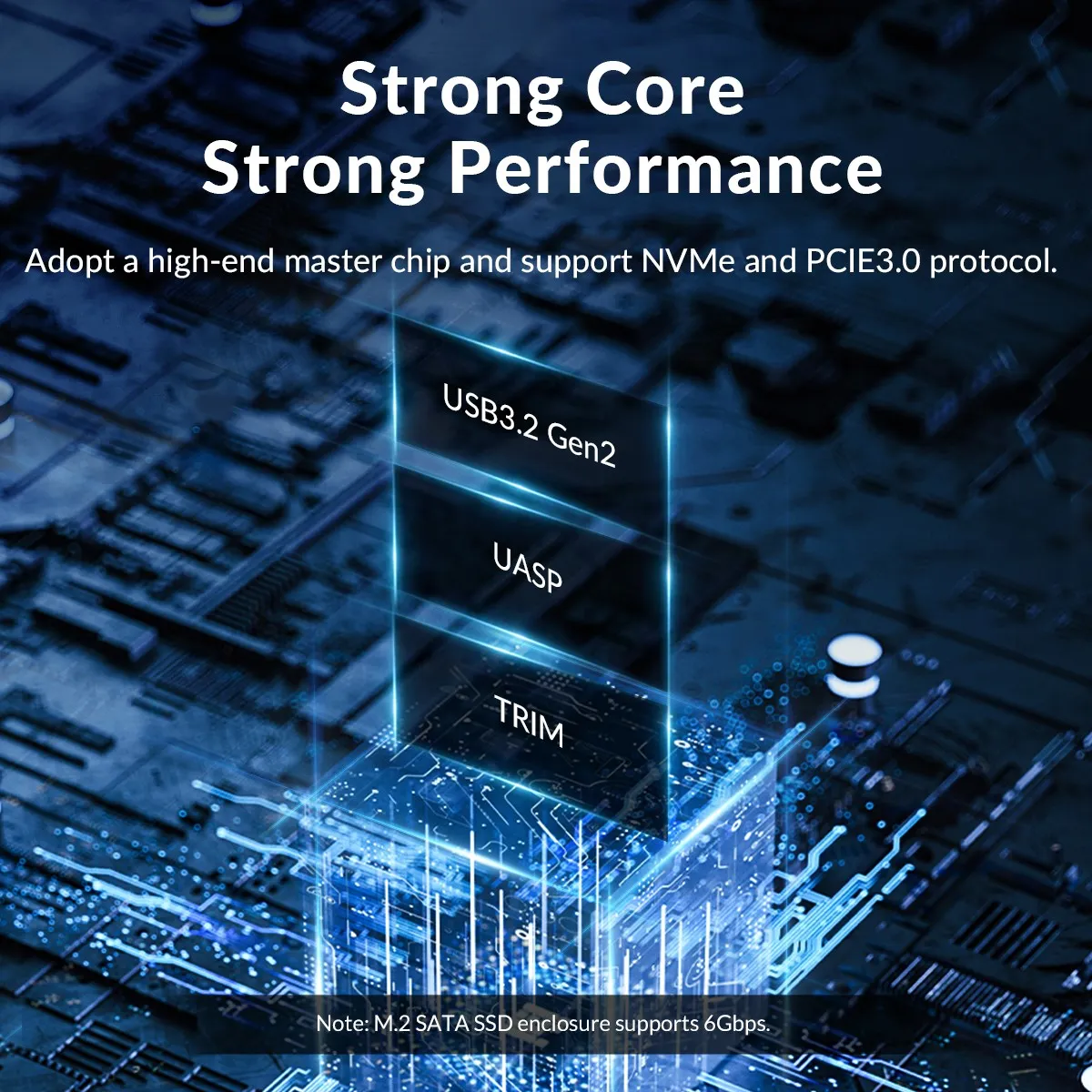 【10Gbps Extreme Speed】- NVMe enclosure adopts USB 3.1 Gen 2 transfer speed up to 10Gbps, which is 2× faster than USB 3.0. It can sync photos, videos and musics in seconds. Adopt high-level master control scheme, supports UASP/Trim. Come with 2-in-1 USB C to C/A 10Gbps cable.