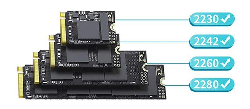 Compatible con 4 tamaños diferentes M.2 SSD : 2230, 2242, 2260, 2280.