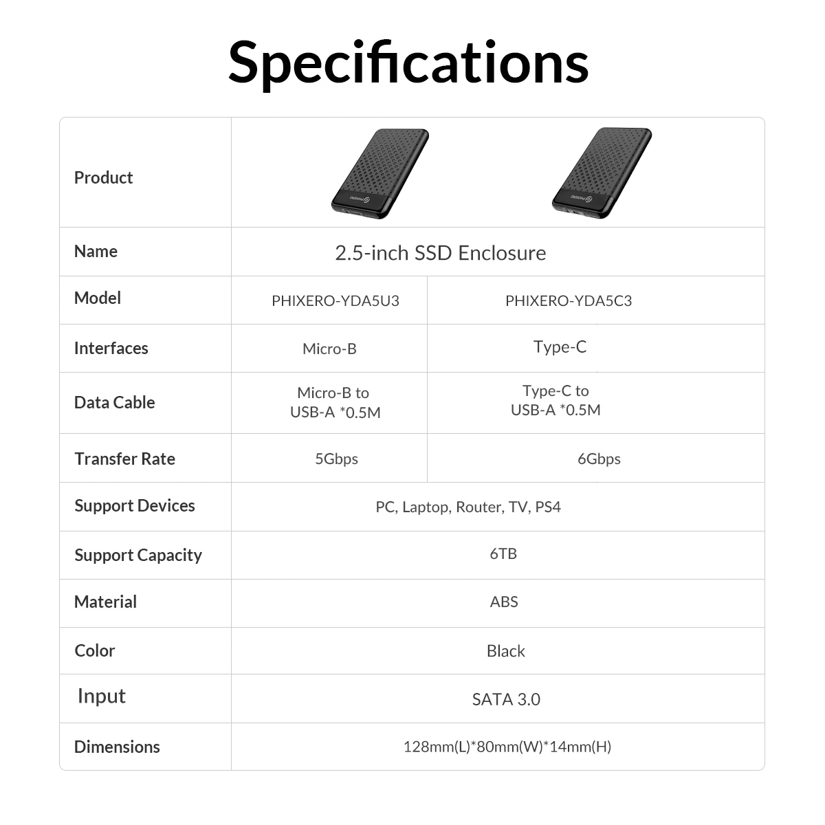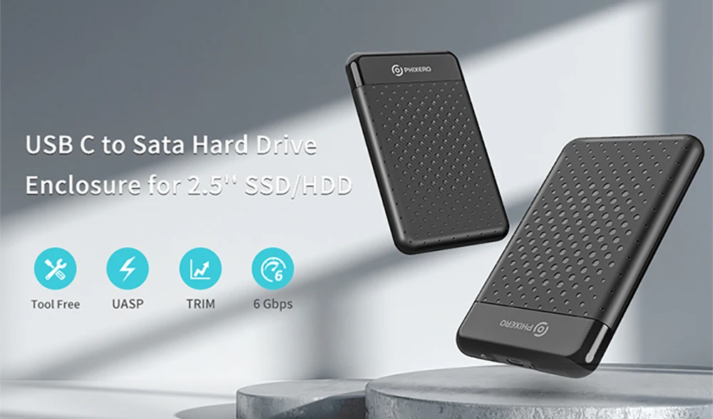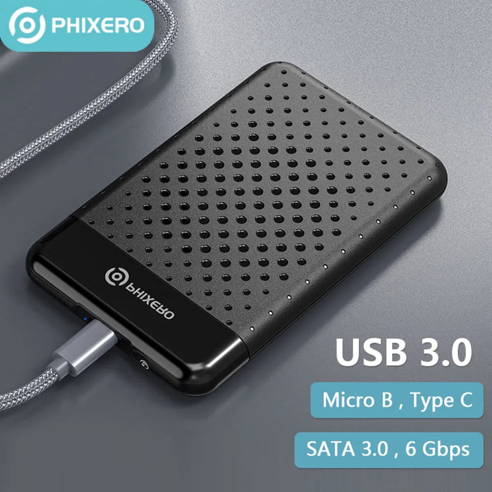 PHIXERO 2.5" Inch SATA SSD External Case USB 3.0 HDD Drive Enclosure Type C UASP 5Gbps 6Gbps USB3.0 SATA3 Storage Box Housing PC