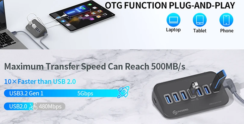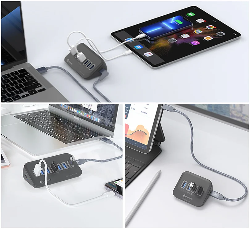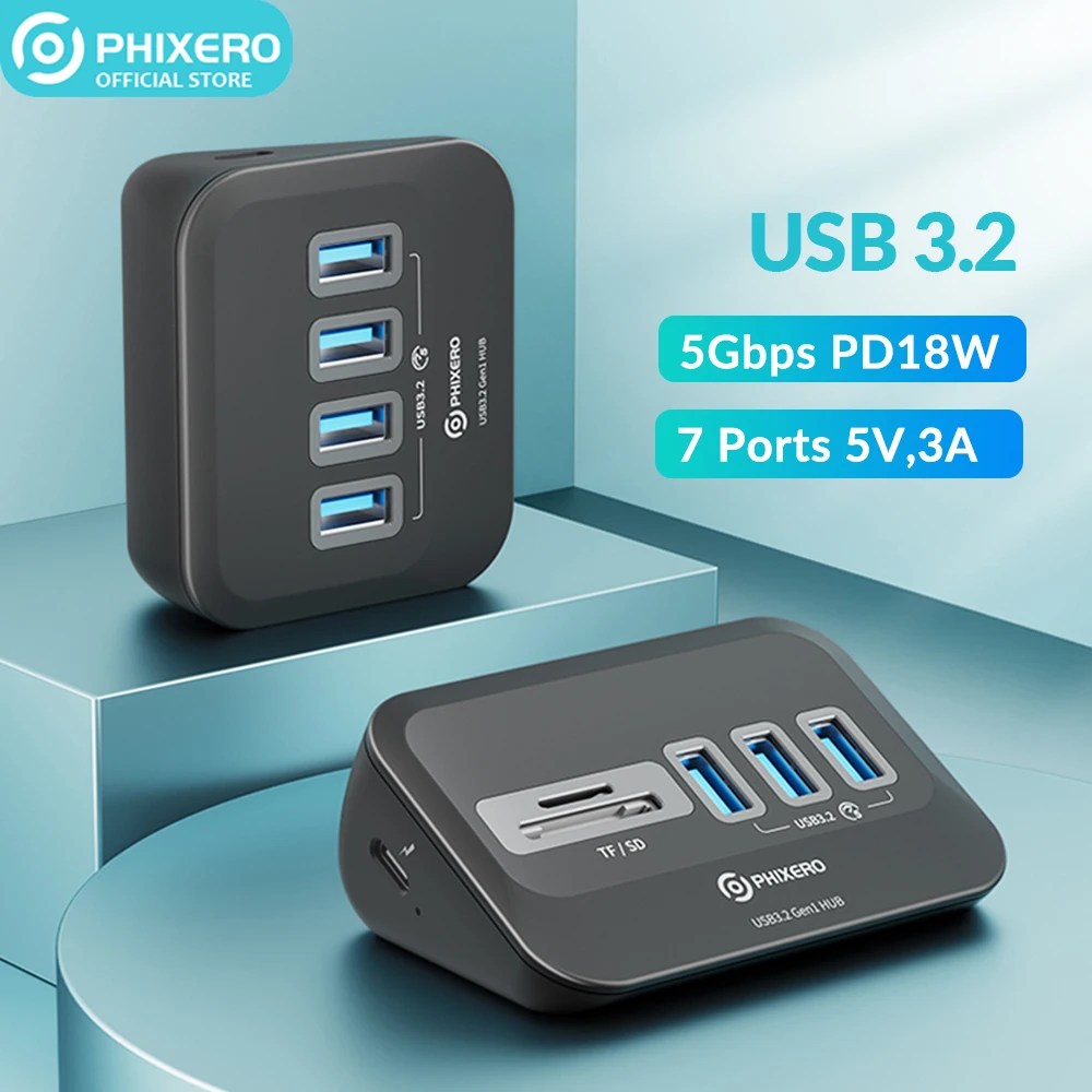 Comprar PHIXERO-Divisor USB 3,2, estación de acoplamiento Hub tipo C, adaptador de múltiples puertos, varios enchufes OTG 3,0 con lector de tarjetas SD para ordenador portátil y PC
