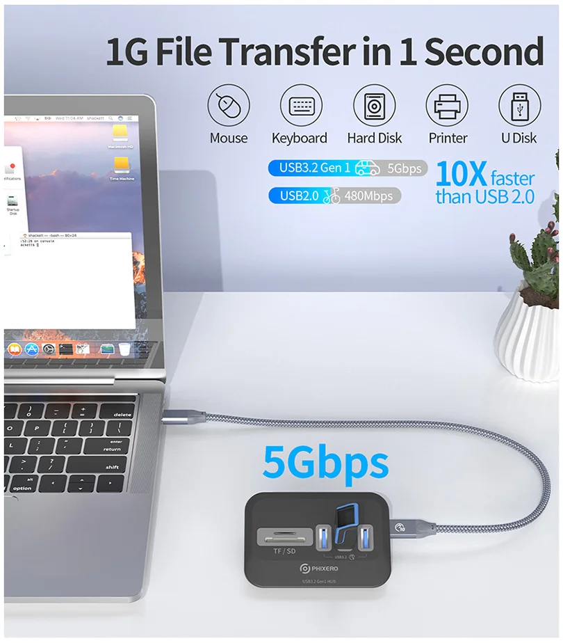 PHIXERO USB 3,2 estación de acoplamiento Hub tipo C adaptador divisor puertos múltiples varios enchufes OTG 3,0 con lector de tarjetas SD para PC portátil