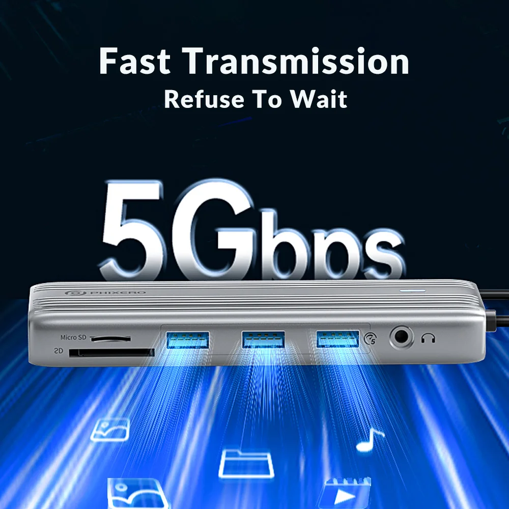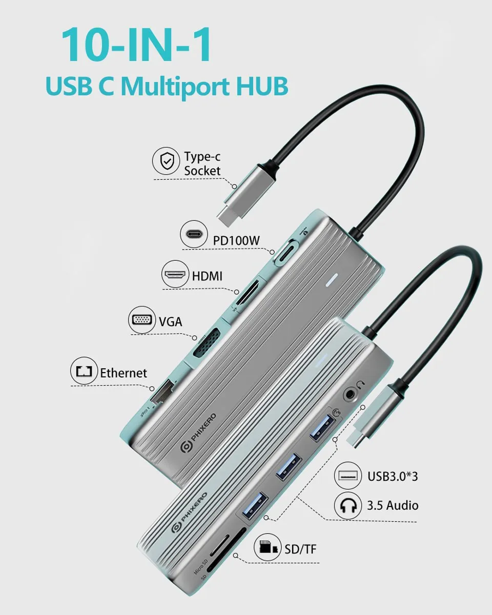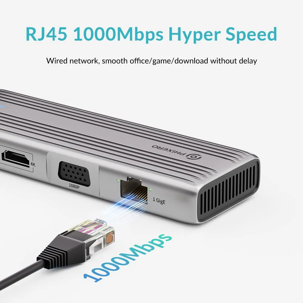 Comprar PHIXERO-estación de acoplamiento multifunción PD100W tipo C HDMI/VGA USB HUB a 5gbps USB3.1/RJ45/ SD/TF 4K 60HZ, funda para MacBook Ipad