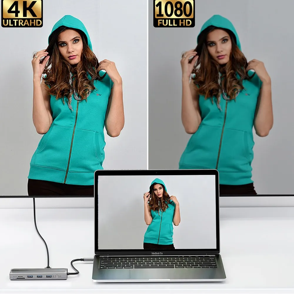 Mirror or extend your screen with USB C to HDMI-compatible adapter to directly stream 4K UHD, Full HD 1080p, or 3D video to HDTV, monitor, or projector. You could not only enjoy movies with your family on a bigger screen, but also make a vivid presentation in a meeting.