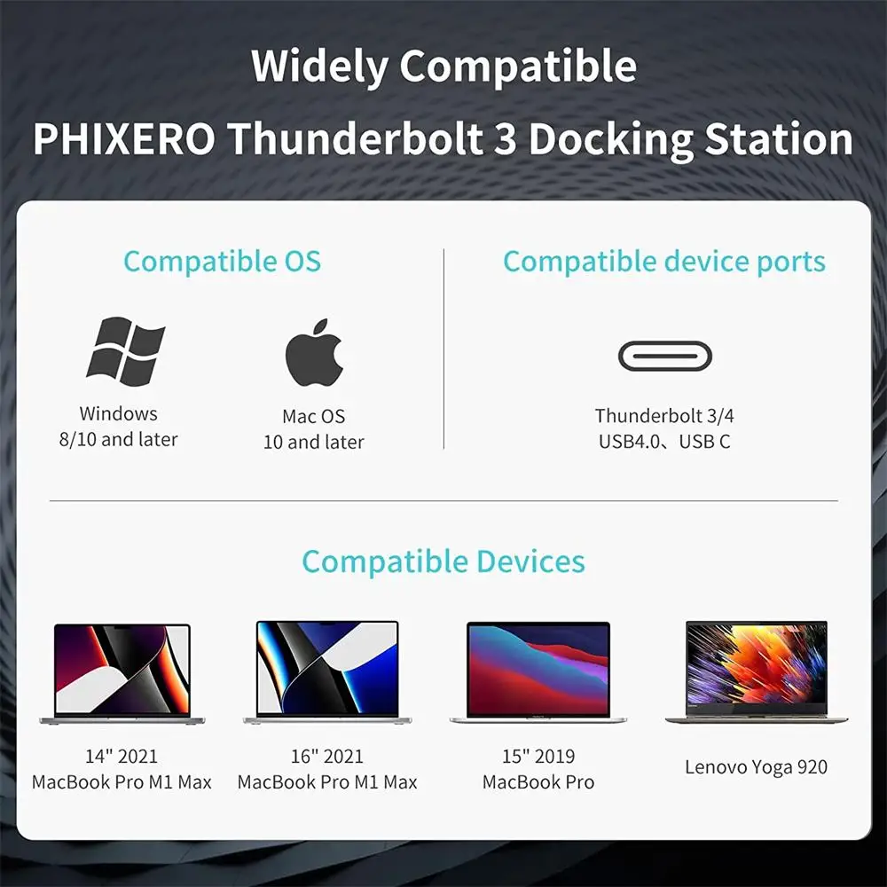 PHIXERO 16-en-1 Thunderbolt 3 Estación de acoplamiento