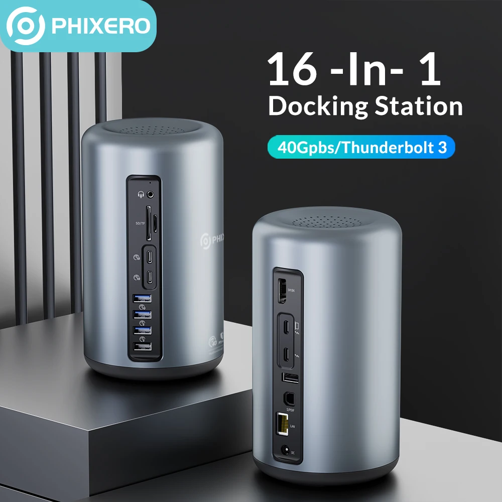 PHIXERO 16-en-1 Thunderbolt 3 Estación de acoplamiento
