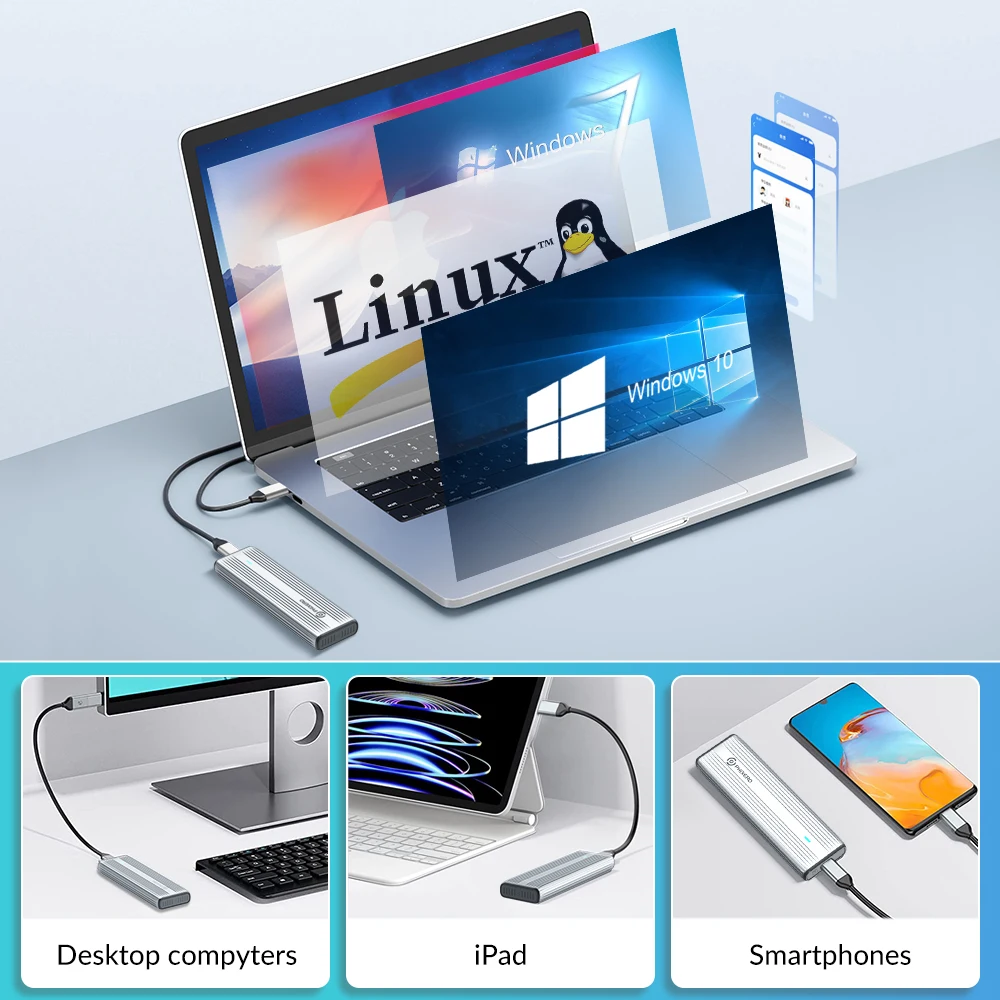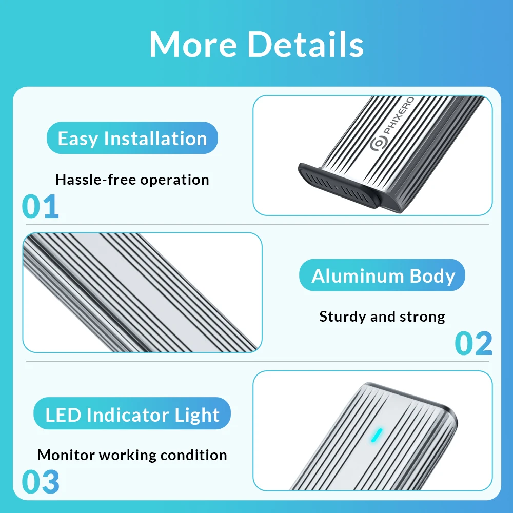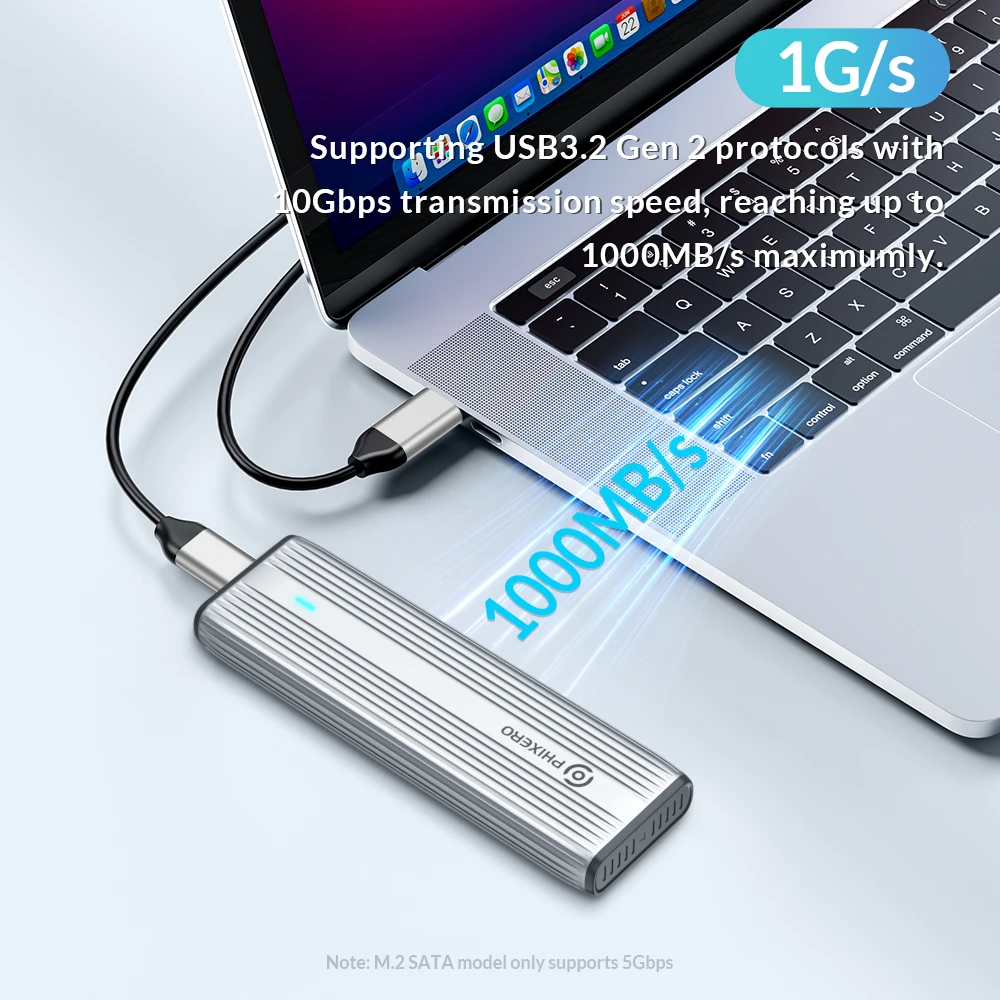 Comprar PHIXERO M.2 NVMe SATA SSD Enclosure Dual Portocol NVMe to USB Adapter 10Gbps USB 3.1 Gen2 USB C External Case Box Aluminum alloy
