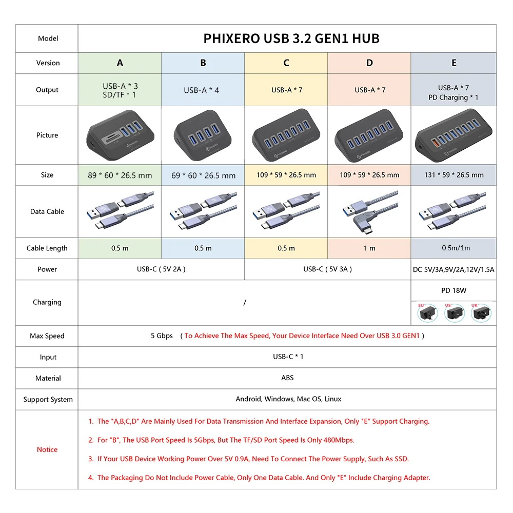 3. Para "A", la velocidad del puerto USB es de 5 Gbps, pero la velocidad del puerto TF/SD es de solo 480 Mbps.
