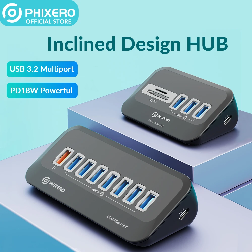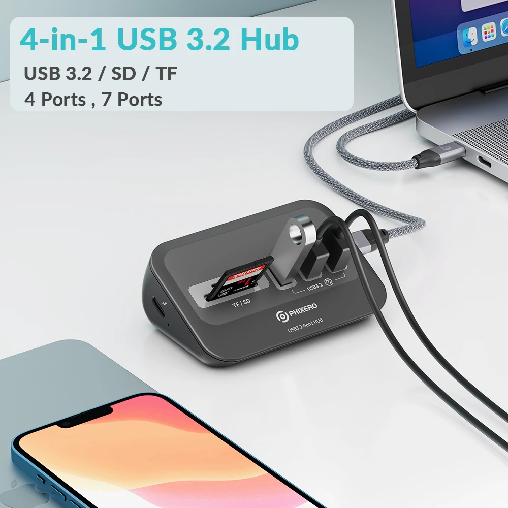 Comprar PHIXERO USB Splitter 3,2 estación de acoplamiento de alta velocidad Hub tipo C adaptador multipuerto varias enchufes OTG 3,0 con lector de tarjetas SD