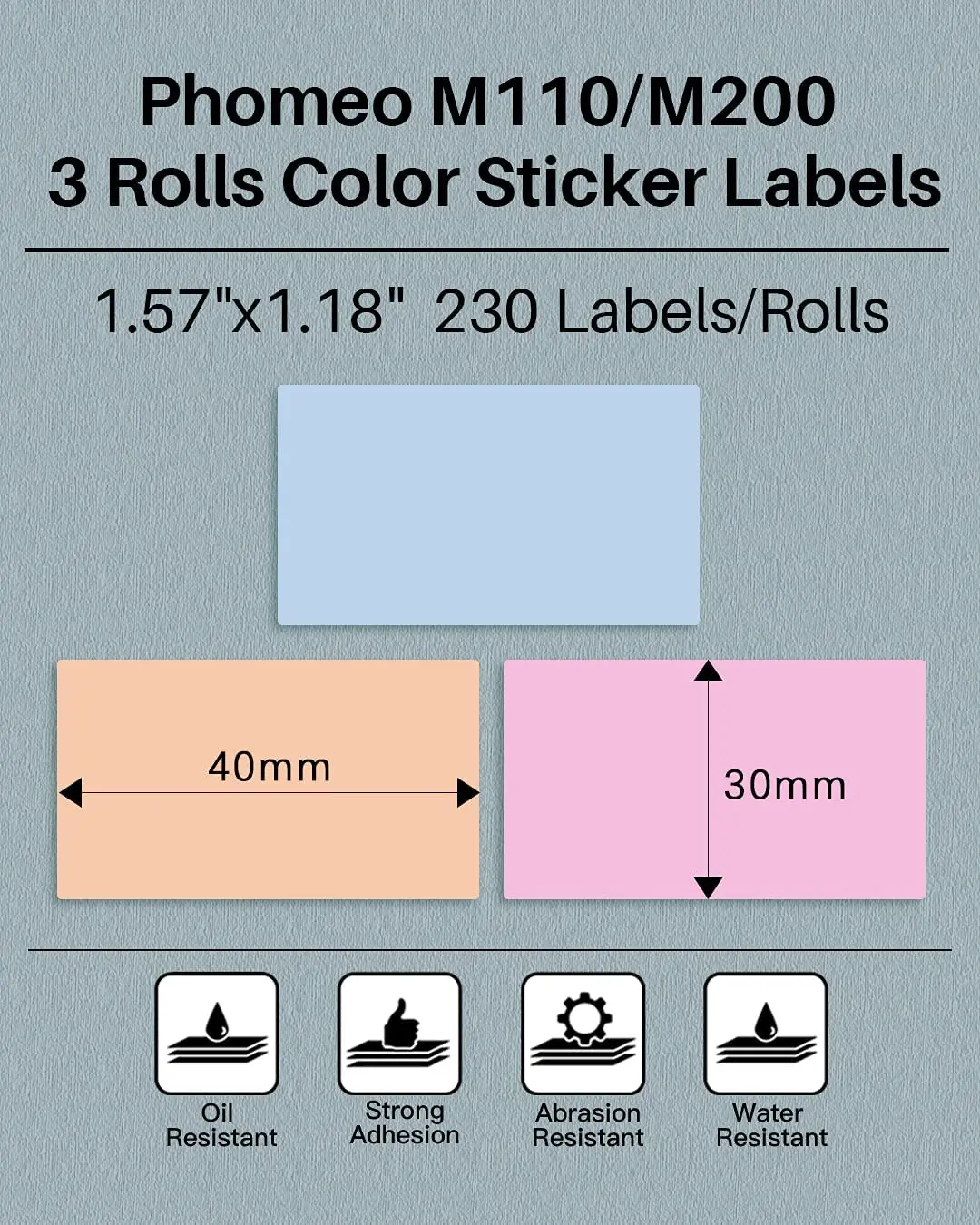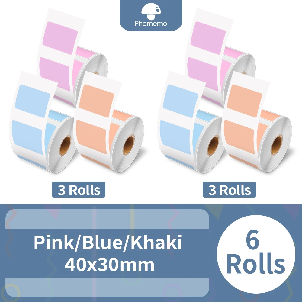 Comprar Phomemo-etiquetas adhesivas M110/M110S/M120/M200/M220, etiqueta negra sobre rosa, caqui y azul de 40x30mm para pequeñas empresas, hogar, oficina