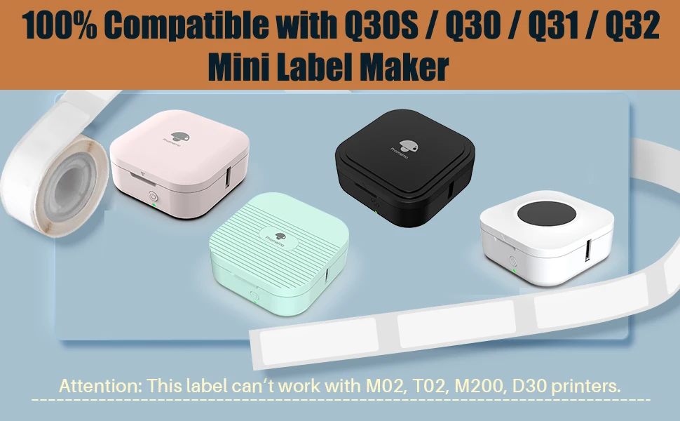 👍Gran compatibilidad: 100% compatible con la etiquetadora Phomemo Q30 / Q31 / Q32 / Q30S-[Atención: esta cinta de rollo de etiquetas NO es compatible con la impresora de etiquetas D30.]