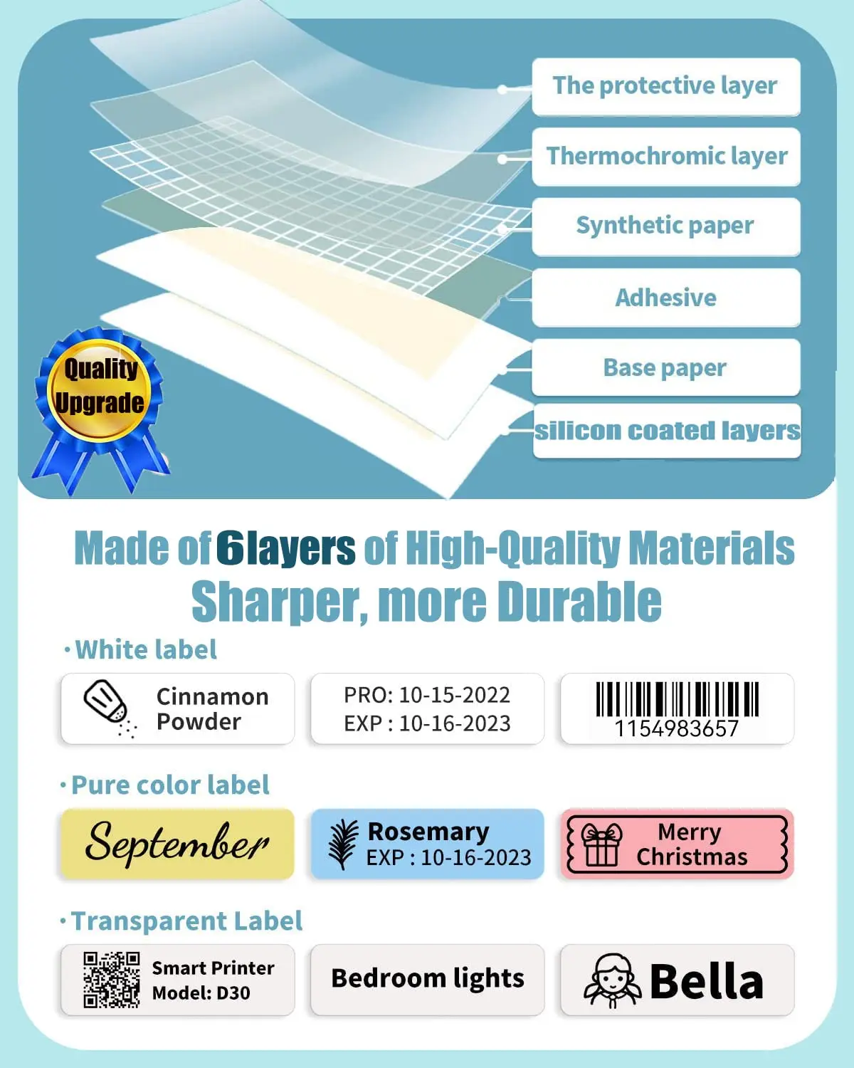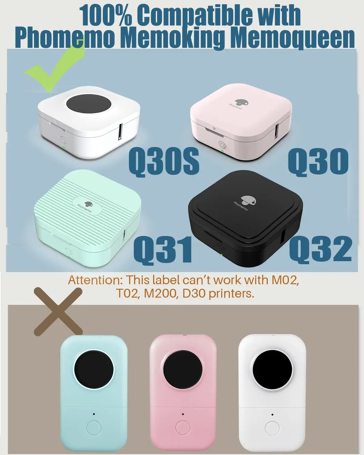 👍Gran compatibilidad: 100% compatible con la etiquetadora Phomemo Q30 / Q31 / Q32 / Q30S-[Atención: esta cinta de rollo de etiquetas NO es compatible con la impresora de etiquetas D30.]