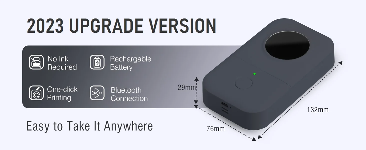 Estas mini rotuladoras llaman Phomemo d30, que utilizan tecnología de impresora térmica. En comparación con la impresora de etiquetas tradicional, esta es una mini rotuladora que no necesita presionar el mini teclado para editarla. Puedes disfrutar de la aplicación inteligente Print Master.