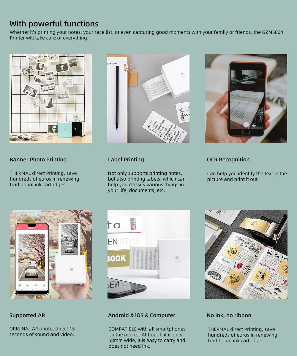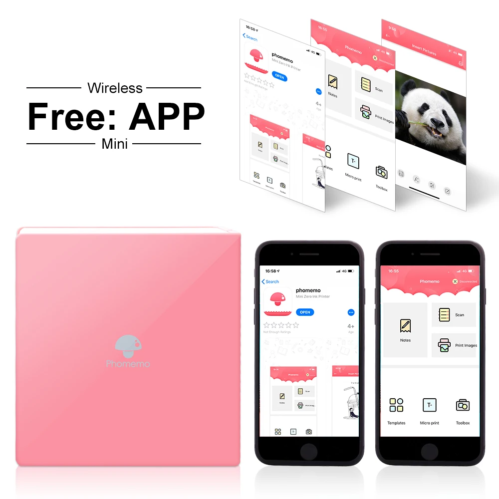 1. mini impresora de bolsillo Phomemo con tecnología de impresión térmica, equivalente a la versión en blanco y negro de la impresora fotográfica.