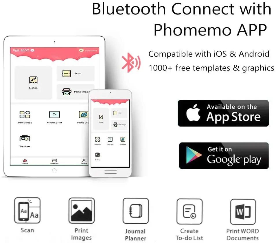 2. Lo más emocionante es que puedes seleccionar las características de la aplicación para imprimir muchos textos interesantes conectando tu teléfono a través de Bluetooth compatible.