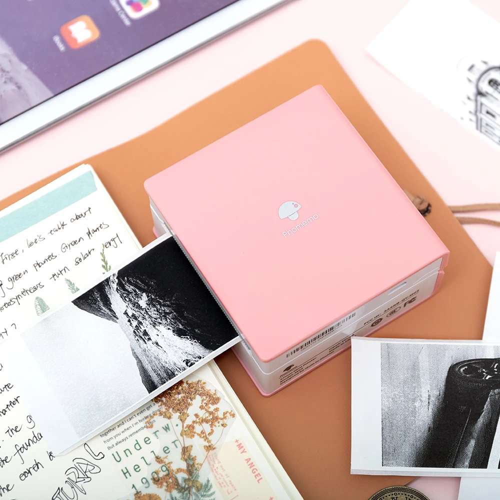 1. mini impresora de bolsillo Phomemo con tecnología de impresión térmica, equivalente a la versión en blanco y negro de la impresora fotográfica.