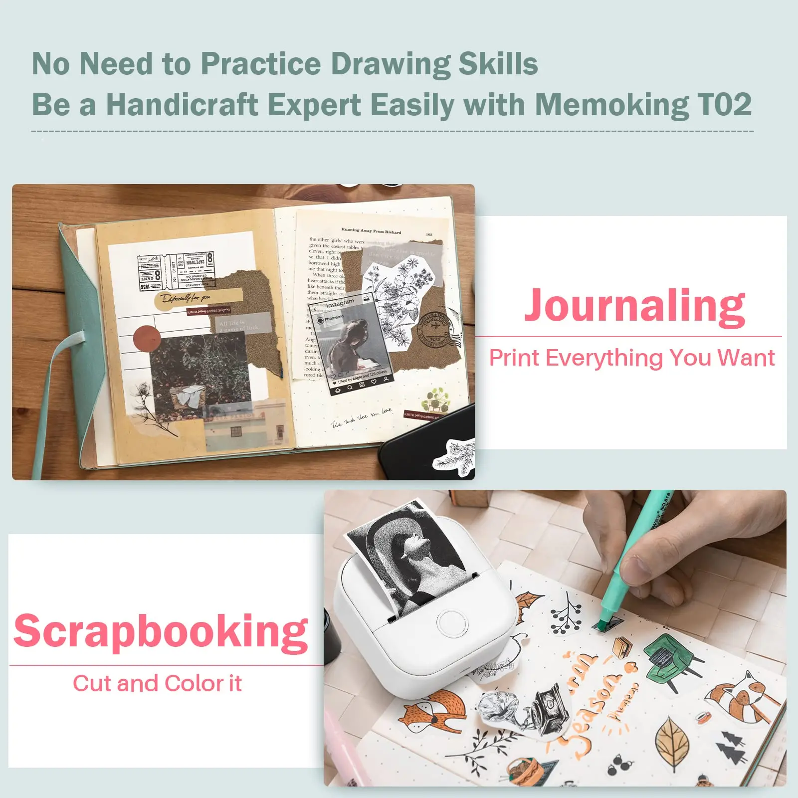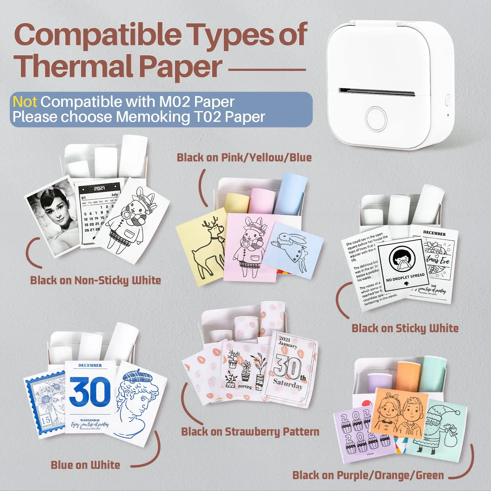Comprar Phomemo-impresora térmica de bolsillo inalámbrica T02, Mini impresora portátil inalámbrica con conexión BT, etiqueta fotográfica de 203dpi, lista de notas, impresión clara