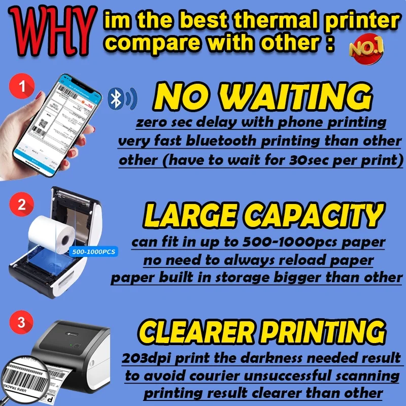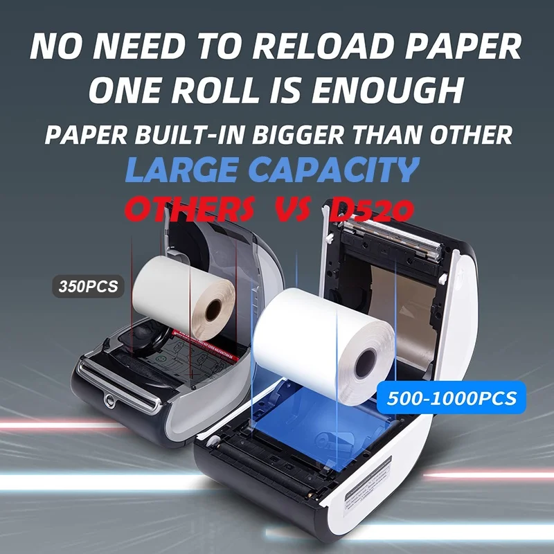 Gran capacidad, capacidad de actualización 2 veces mayor, puede contener 500 hojas de 4x6 pulgadas y 1000 hojas de pegatinas de menor tamaño. No es necesario cambiar los rollos de papel con frecuencia, lo que hace que su impresión sea más eficiente.