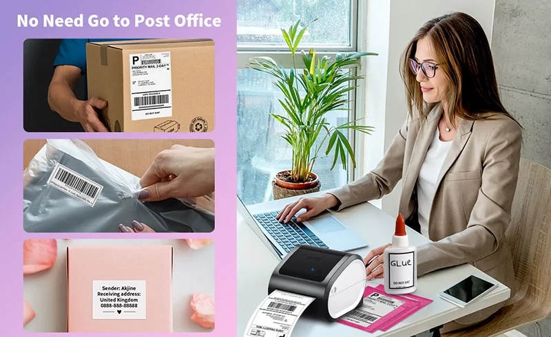 Ahorre dinero ya que la impresora térmica de etiquetas de envío D520 posee tecnología térmica directa para que no tenga que reemplazar la tinta y el tóner. Además, no necesita comprar el soporte de etiqueta adicional. Es bueno para ahorrar dinero y respetuoso con el medio ambiente.