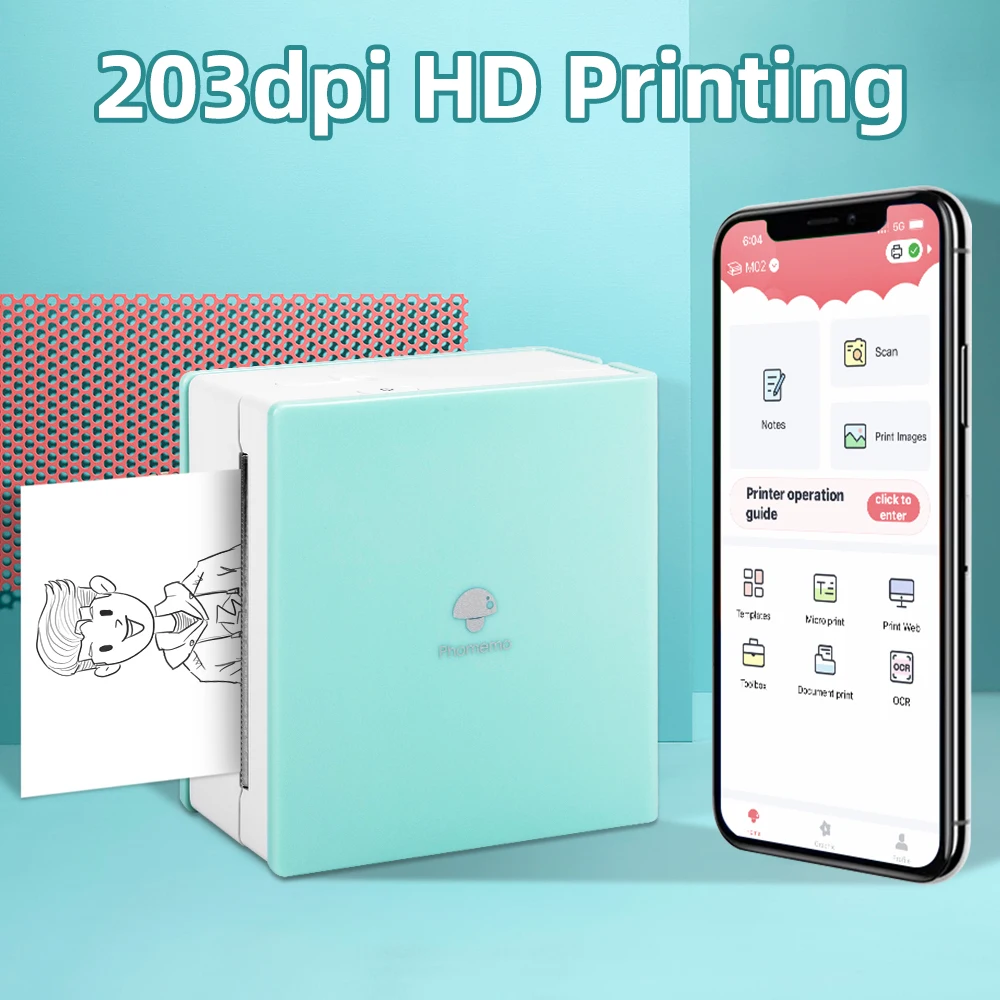 Impresora de bolsillo Phomemo, Mini Impresora inalámbrica compatible con Bluetooth, impresora térmica de imagen fotográfica M02 compatible con Android iOS Smartphone Phone Study, Business, Scrapbooking, Crafting