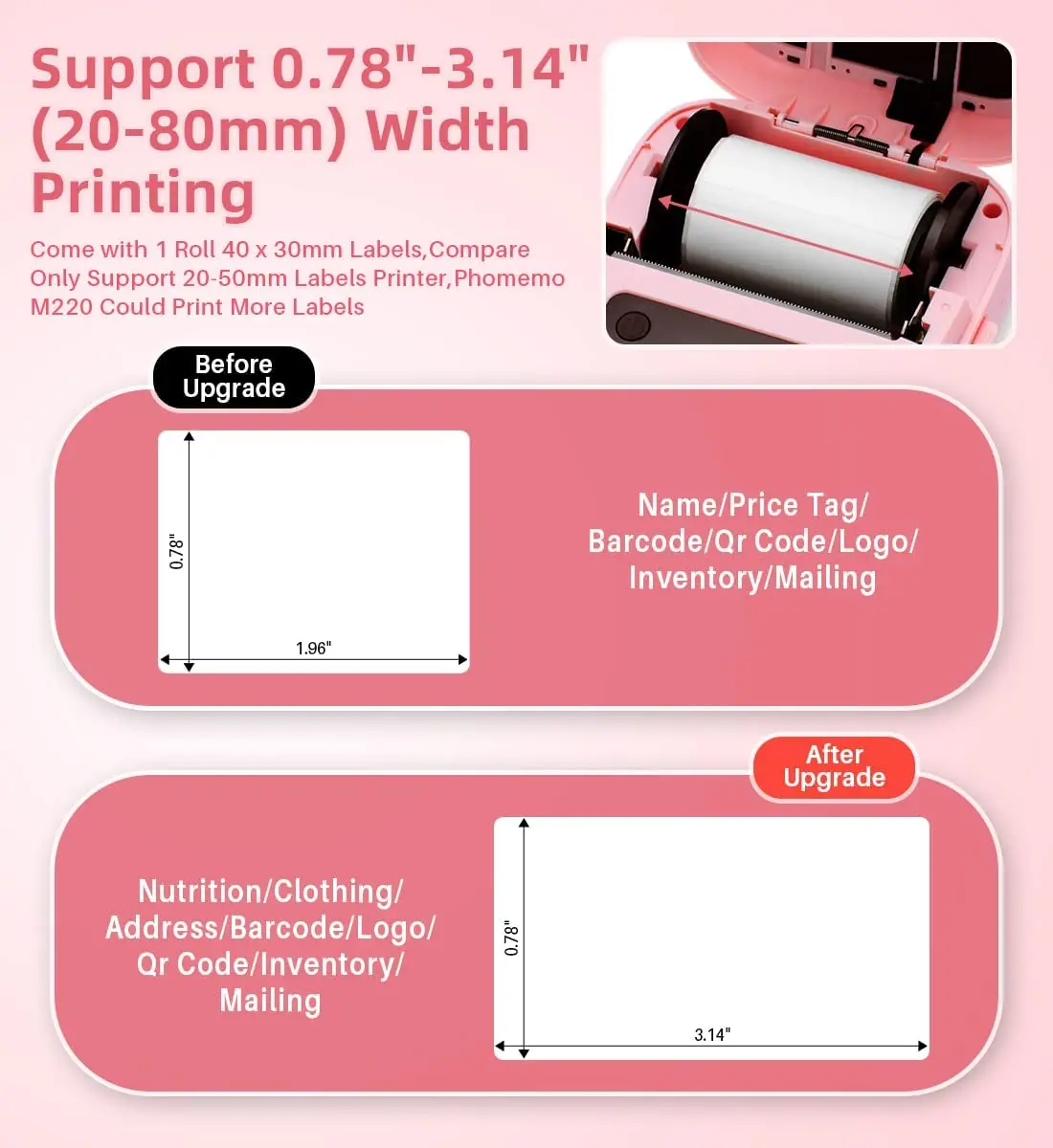 Comprar Phomemo-Impresora térmica de etiquetas M220, máquina de impresión de 3 pulgadas, 80mm, con Bluetooth, uso para etiquetas pequeñas, venta al por menor, para etiquetado de código QR