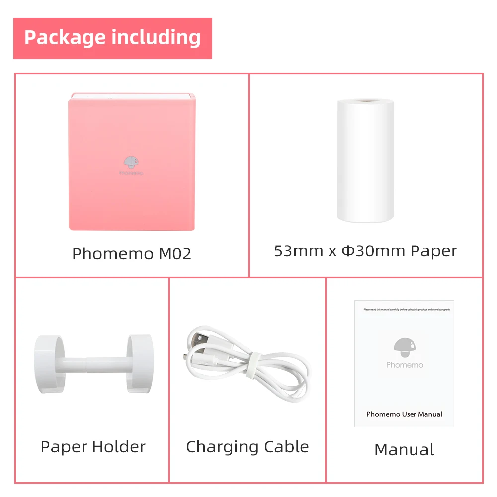 Portable Phomemo M02 Thermal Photo Printer Features: