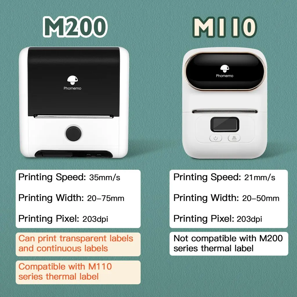 √ Newly cube printer: Phomemo M200 label maker are bluetooth wireless connection and using thermal printing technology which are no ink or toner needed. M200 can printer QR codes, small adress label and image.It's ideal for starting your small business : )