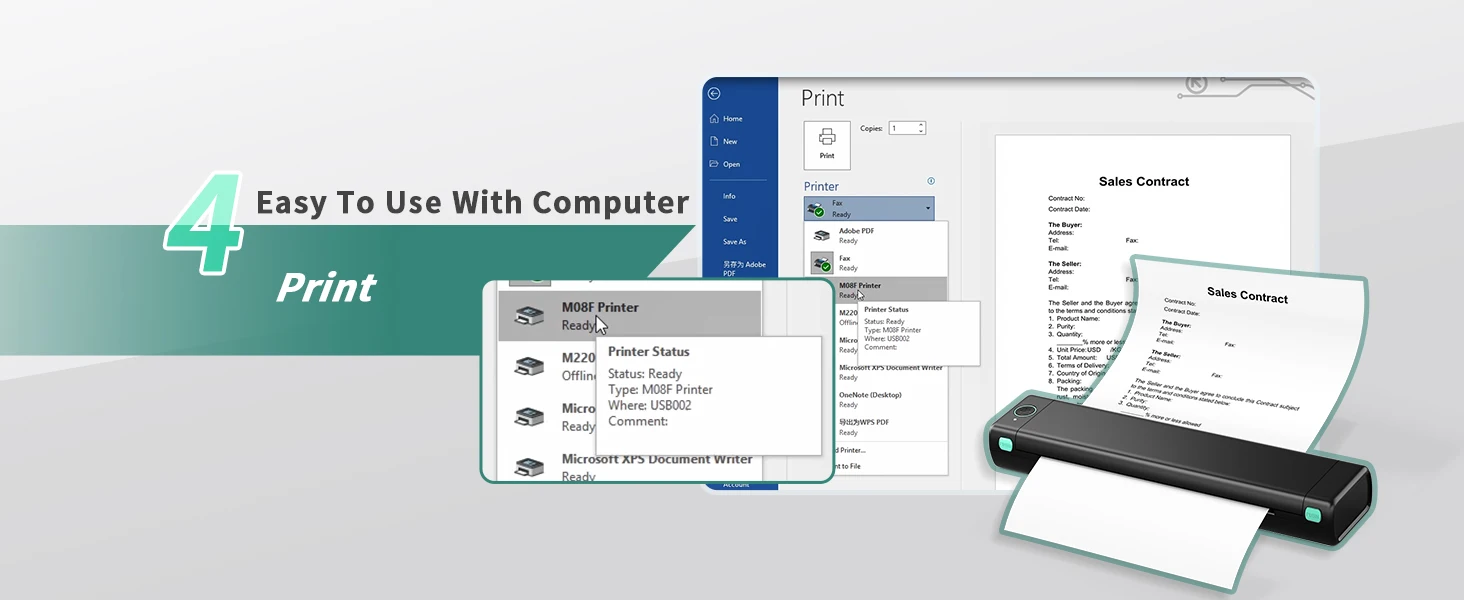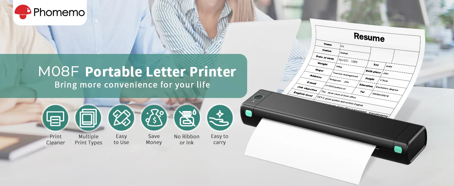 Phomemo Impresoras Portátiles Inalámbricas para Viajes-Impresora Térmica Bluetooth M08F, Apta para Oficina Móvil, Soporta Papel Térmico 8,26 "X 11,69", Compatible con Teléfonos Android e iOS