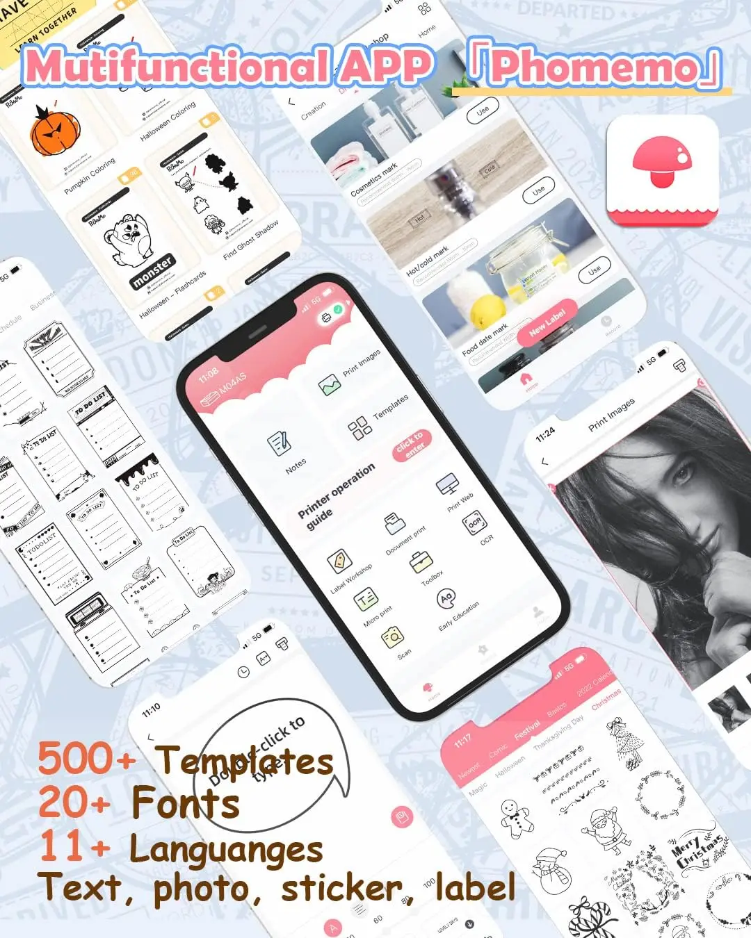 APP fácil e inteligente-La impresora portátil Phomemo M04AS es compatible con teléfonos móviles y tabletas, pero no con ordenadores. La aplicación incluye fotos, documentos, páginas web y funciones de escaneo e impresión OCR. También puede utilizar el taller de etiquetas para imprimir etiquetas. Cientos de bonitos materiales gratuitos están disponibles para su uso y se actualizan constantemente.