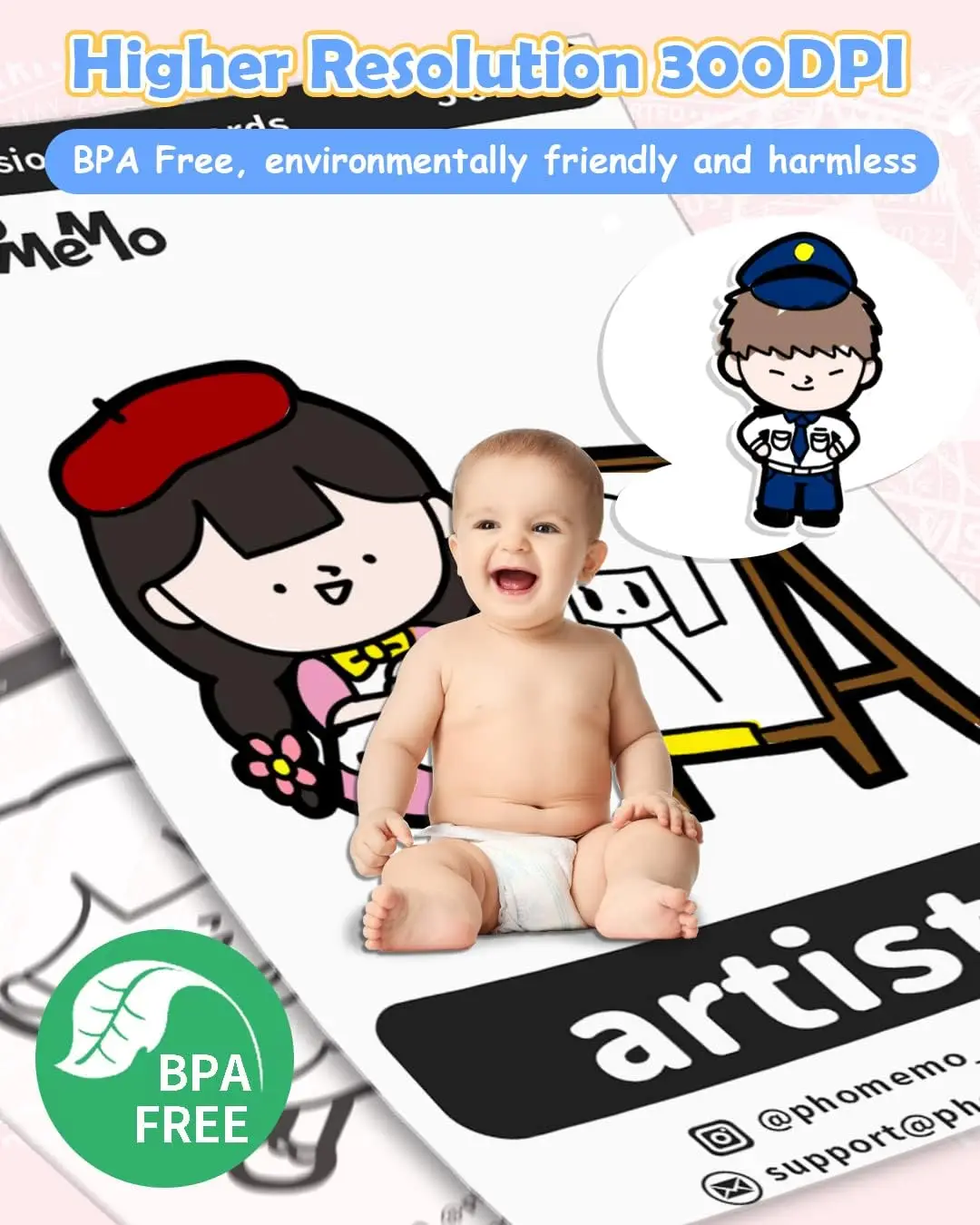 Alta resolución con 300dpi-Adopta con tecnología de impresión sin tinta, efecto de impresión claro cuando está completamente cargado. No se necesita tinta ni cinta de carbón, y el papel de impresión no se volverá negro. Esta mini impresora está equipada con un rollo de papel térmico blanco de 110mm de ancho.