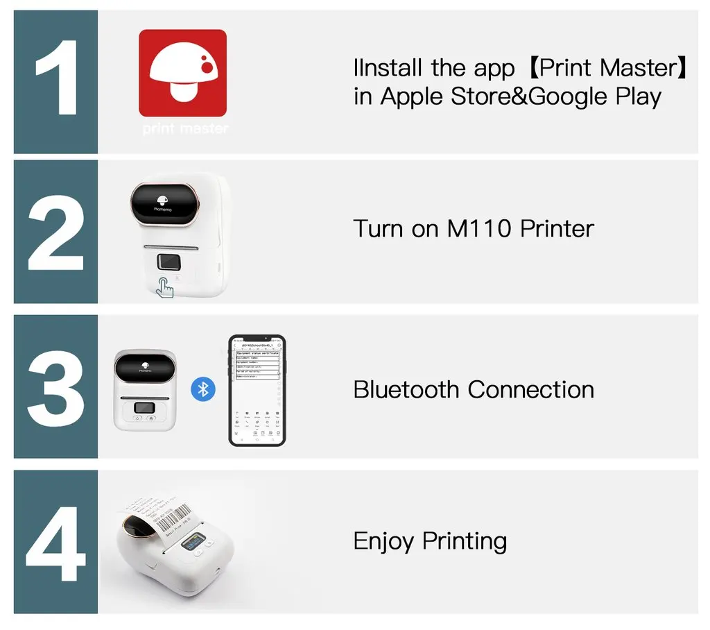 Phomemo-M110 fabricante de etiquetas es una máquina de etiquetas multiusos. Esta mini impresora de etiquetas tiene una amplia gama de usos e implica muchas industrias: ropa, alimentos, telecomunicaciones, joyería, escuela, uso doméstico, etc. Especificaciones consumibles: ancho máximo 57mm, diámetro 50mm.