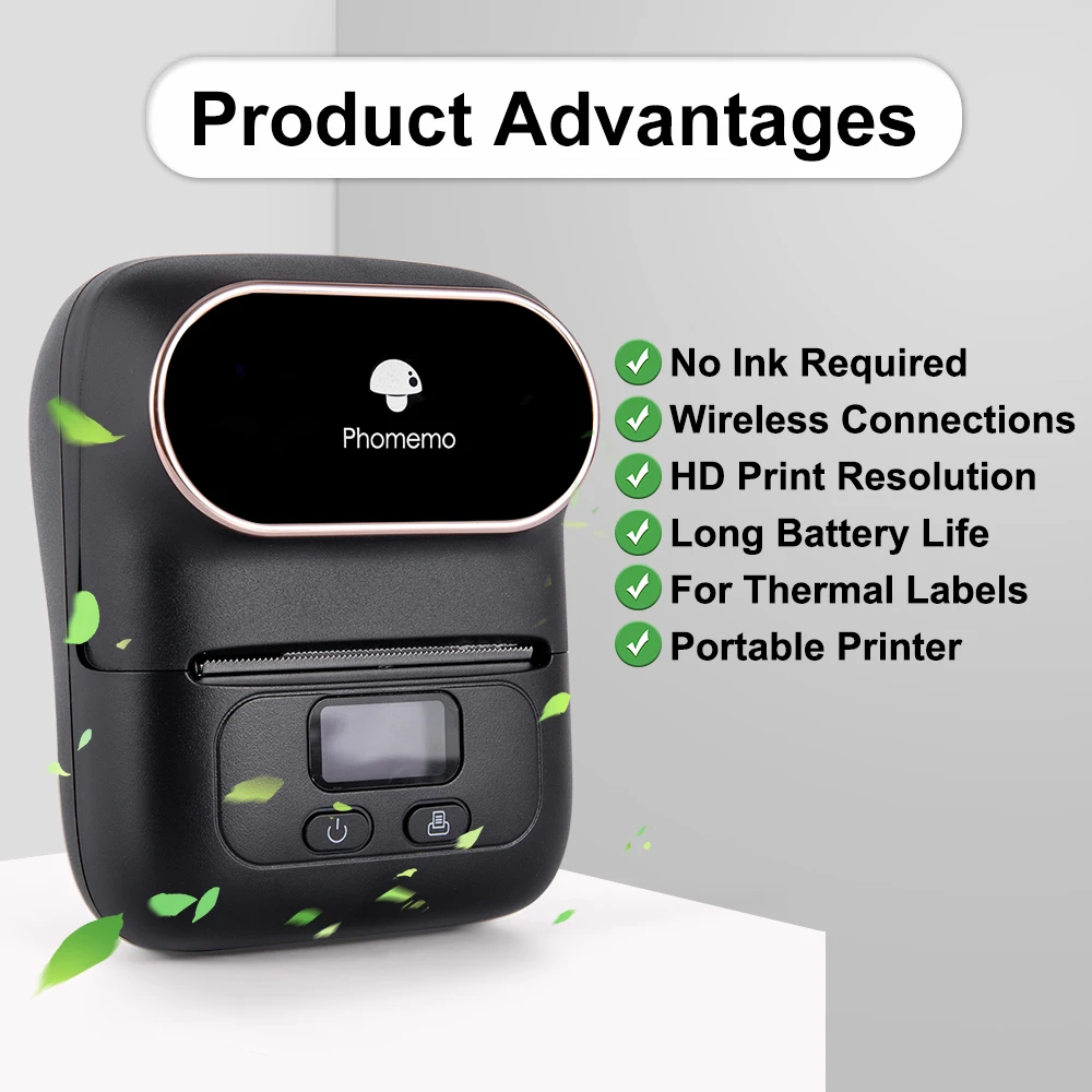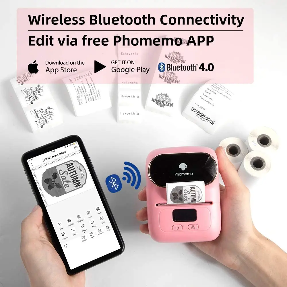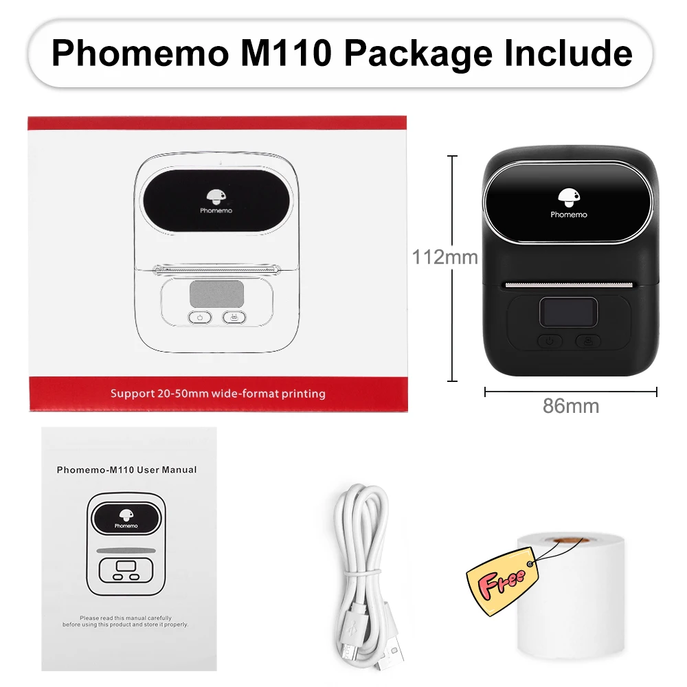 Impresora de etiquetas Phomemo M110 original, miniimpresora portátil de etiquetas térmicas compatible con Bluetooth, impresora Phomemo para teléfono + 1 rollo de papel de etiquetas