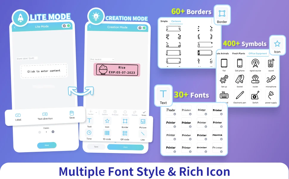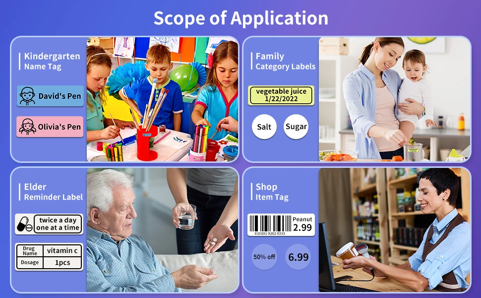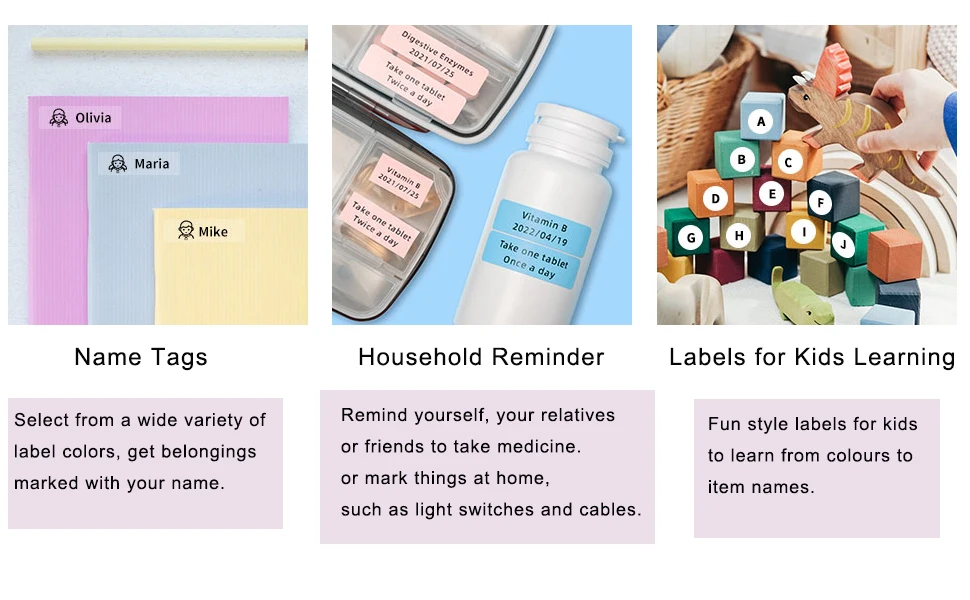 Plantillas de etiquetas múltiples-Elija entre una amplia variedad de plantillas prediseñadas o etiquetas de diseño de más de 300 símbolos, más de 60 marcos y una variedad de fuentes, comodidad y ahorro de tiempo. Tamaño de la etiqueta de 0,24-0,47 pulgadas, ideal para etiqueta de precio, identificación de cables, identificación personal de artículos, marcado de fechas de alimentos y más.