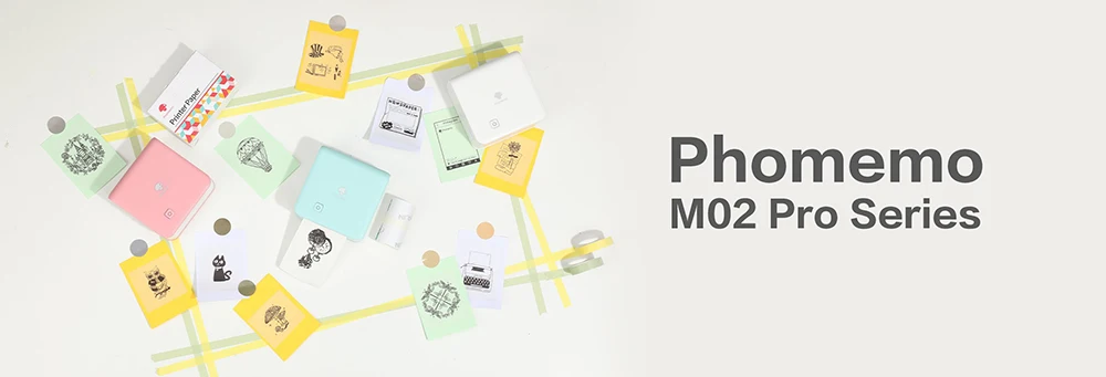 Comprar Phomemo-Mini impresora térmica portátil M02 Pro, máquina de impresión fotográfica sin tinta, de bolsillo, inalámbrica, color blanco y negro