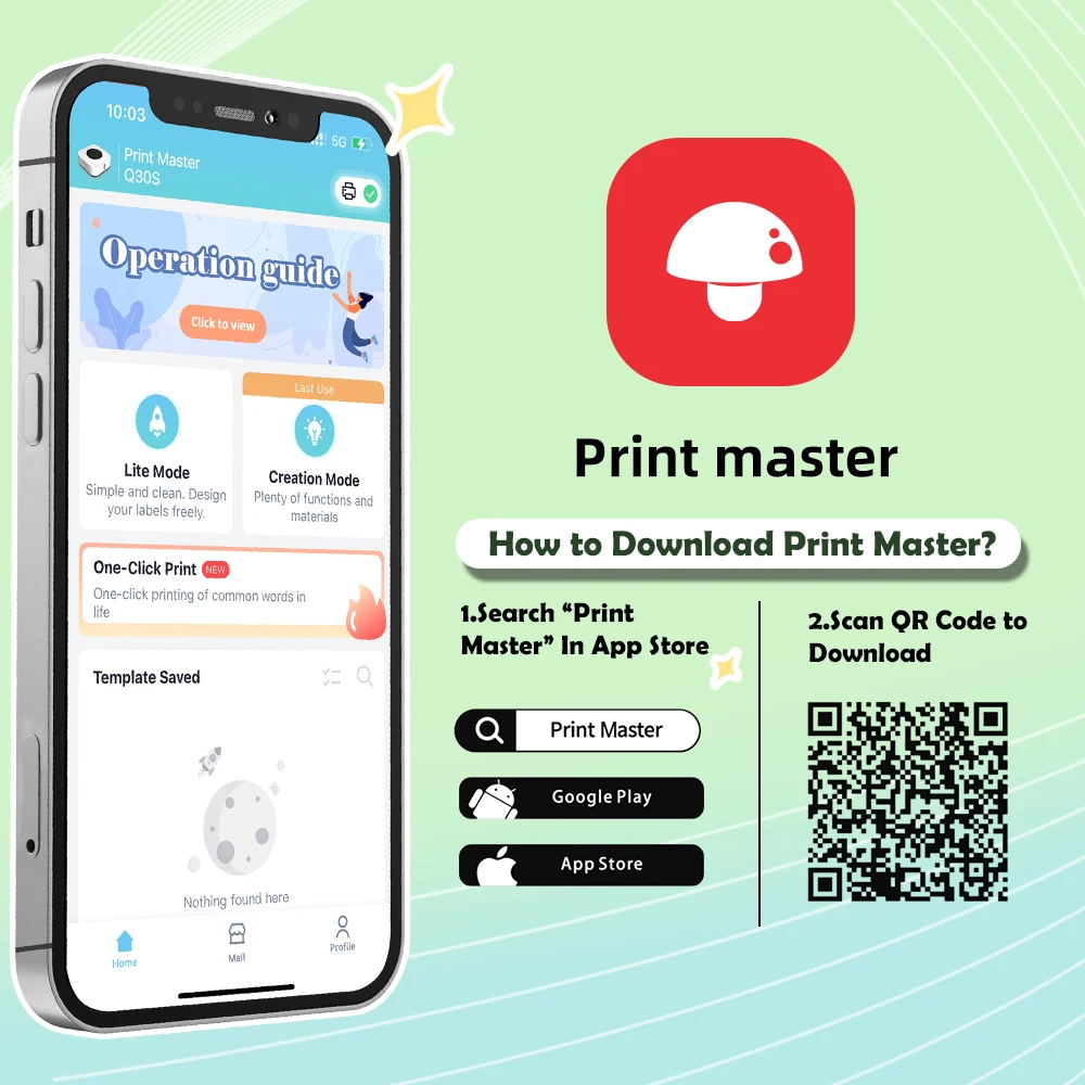 【 Unlimited Customization 】- The "Print Master" APP provides 100 quick templates and more than 1000 symbols/borders/fonts for free. The customization capability of the Q30S mini thermal label printer is beyond the reach of other labeler maker.